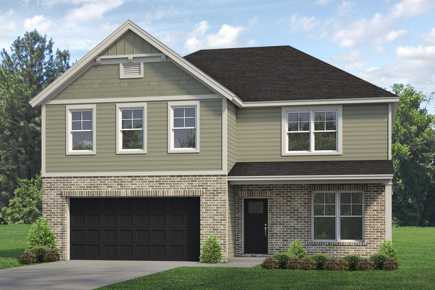 make this rendering more interesting but do not change the colors or any structural aspects of the home make it a bright sunny summer day