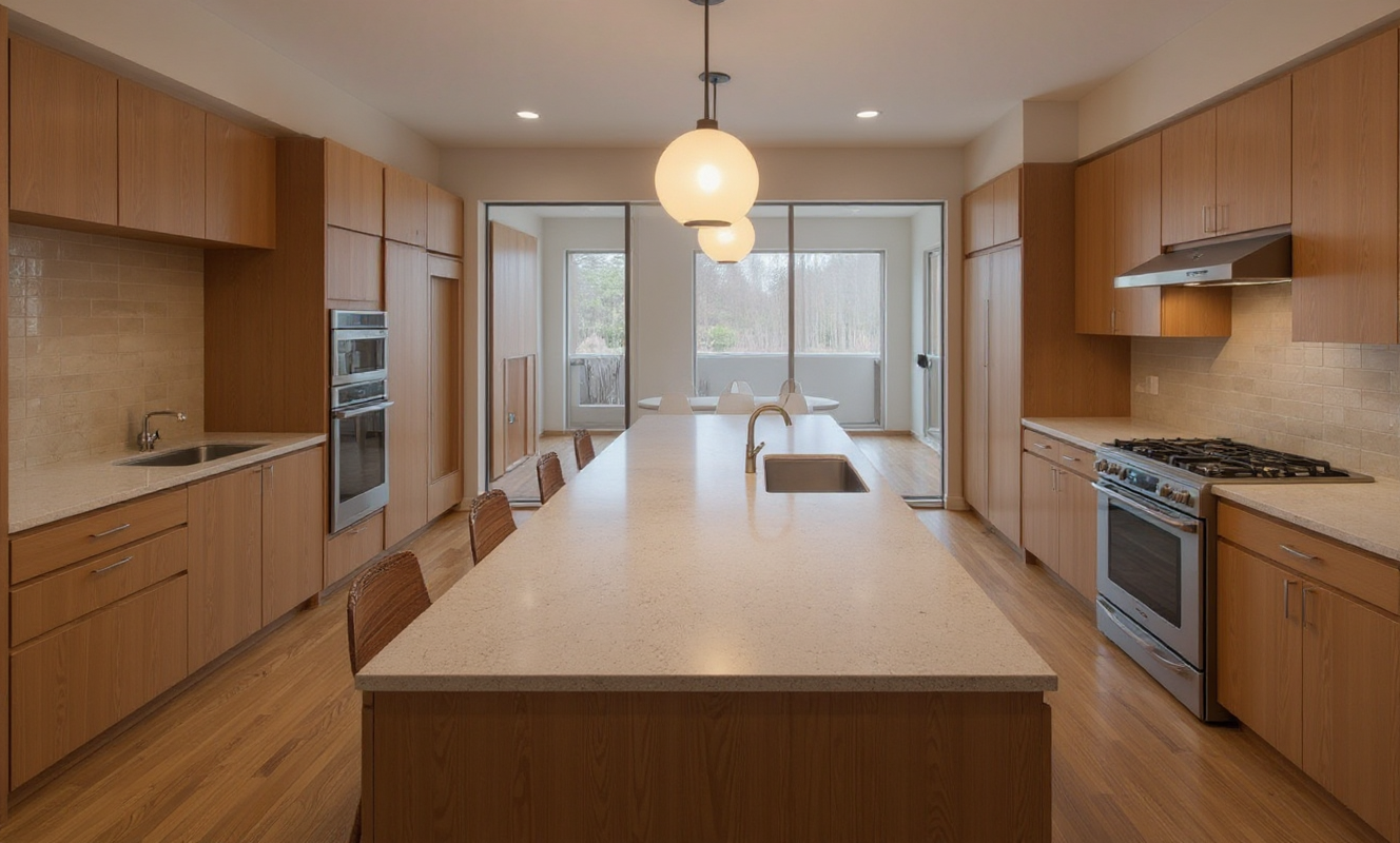 lighter wood tone full island waterfall