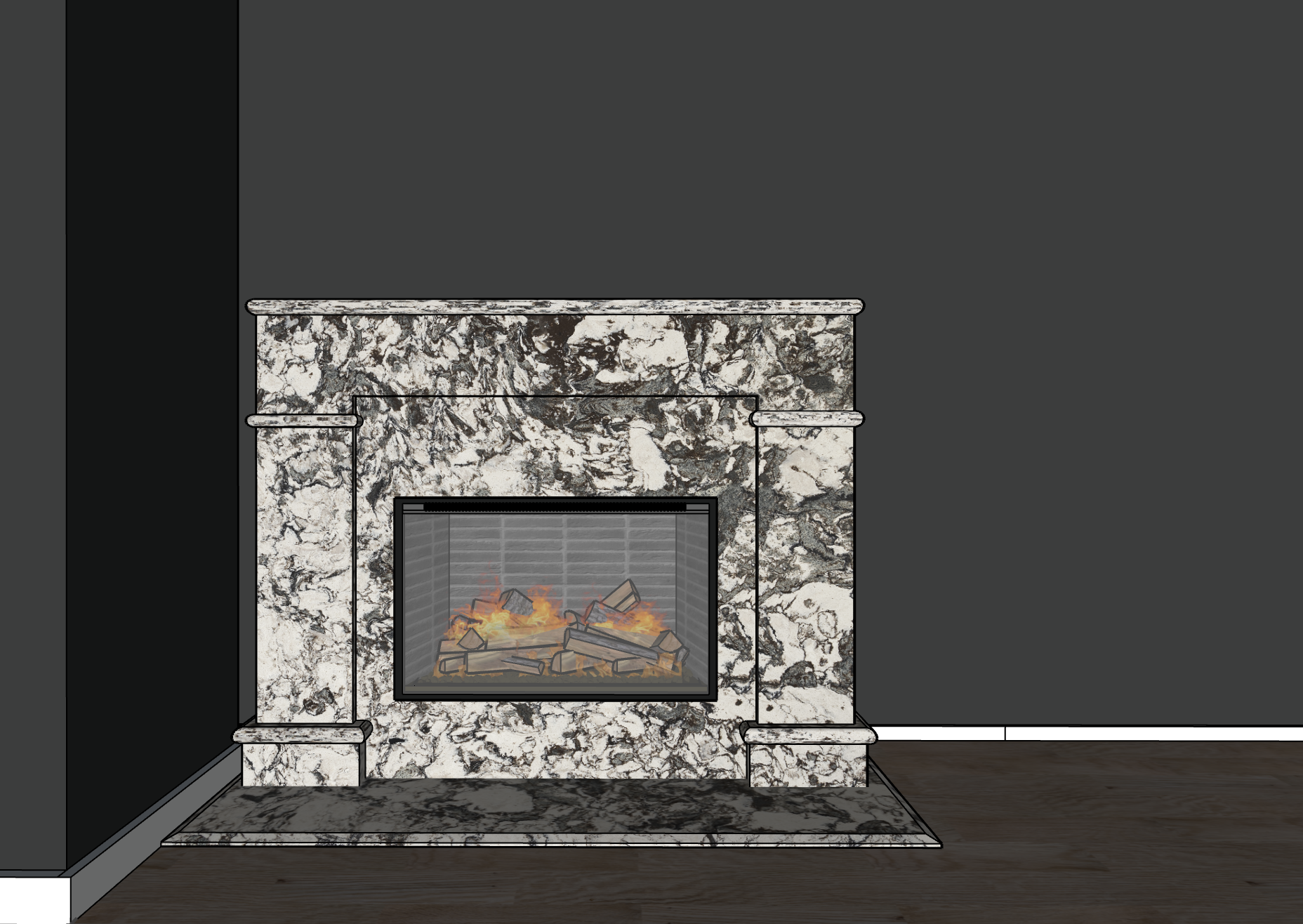 make this shoecase fireplace photo realistic this is a matte finish stone so there should be no reflection