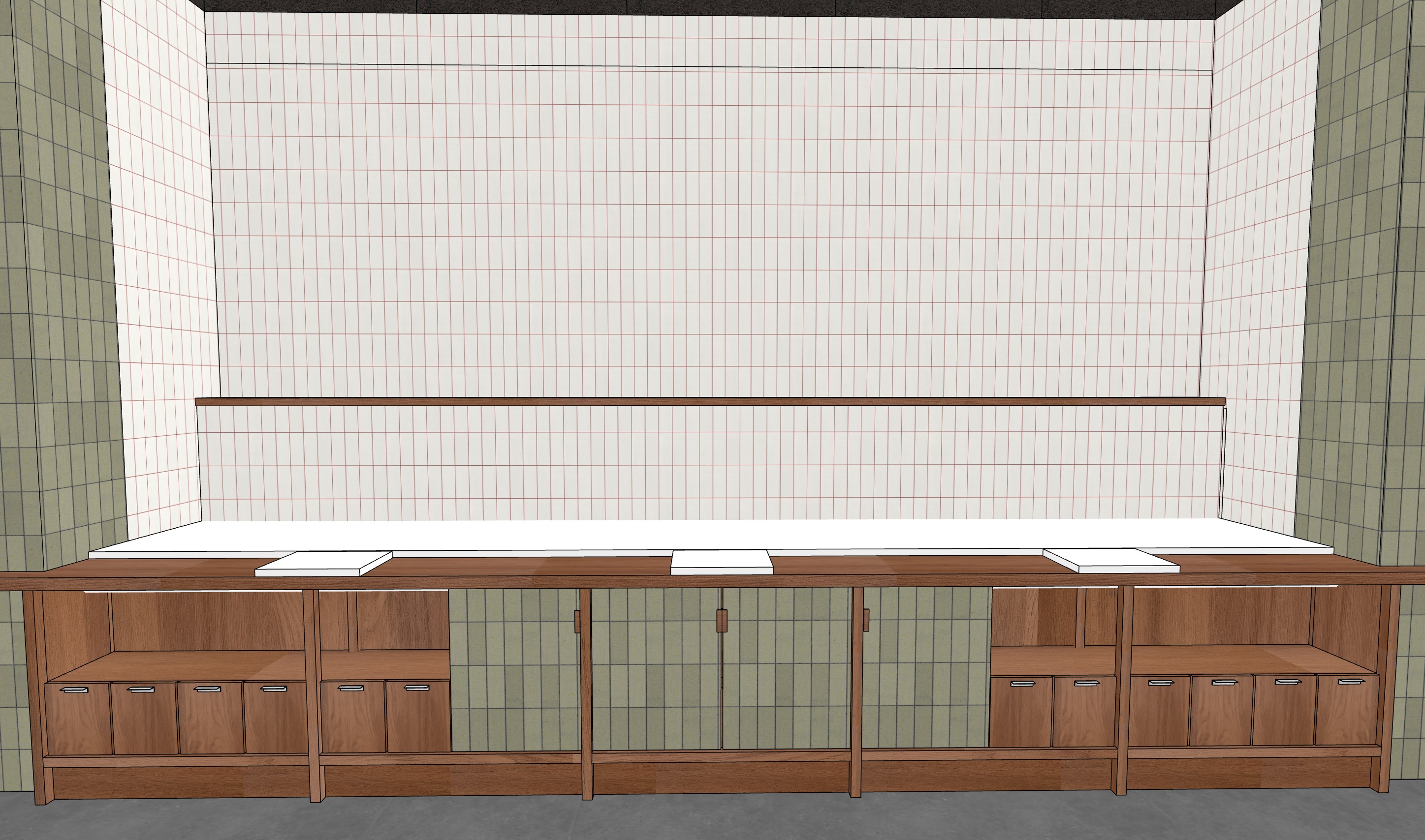wide angle view of a wooden spice bar in a high end corporate dining space the furniture is crafted from raw and warm wood with open drawers filled with colorful spices herbs and seeds people are helping themselves with small wooden scoops or spoons the scene expresses pleasure creativity freshness diversity sensoriality and conviviality large glass jars and bowls are integrated in the structure with burlap sacks and ceramic pots nearby the light is soft and natural with greenery or dried herbs for decoration evoking a refined and artisanal ambiance