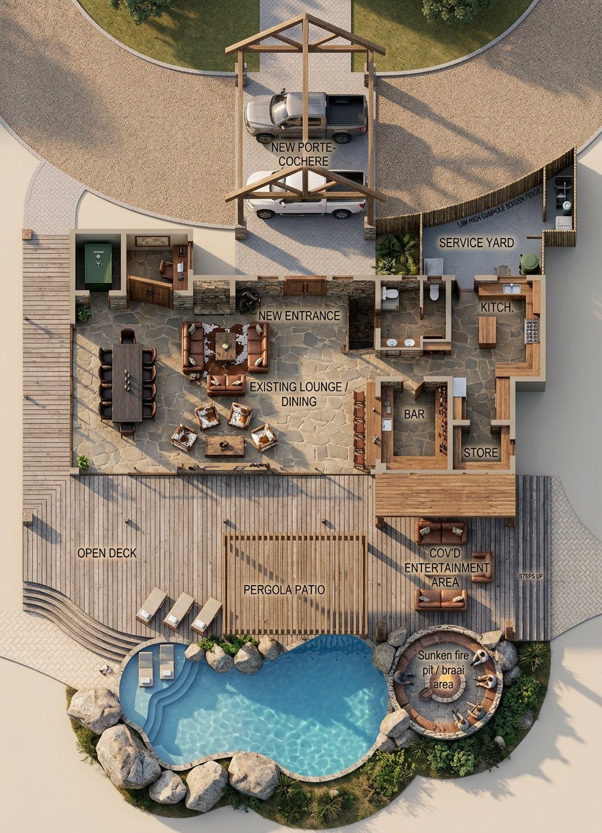 preserve exact and same geometry same colours textures sun and shades position small trees in backround grass rocks bushes