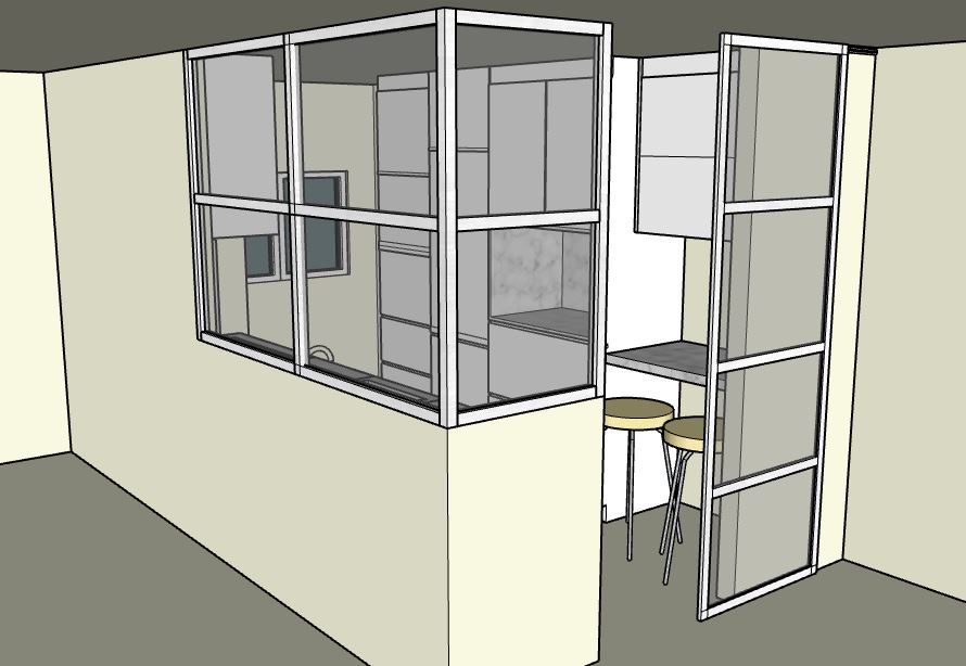 no handles anywhere keep marble countertops keep interior windows aluminum white cupboards are white