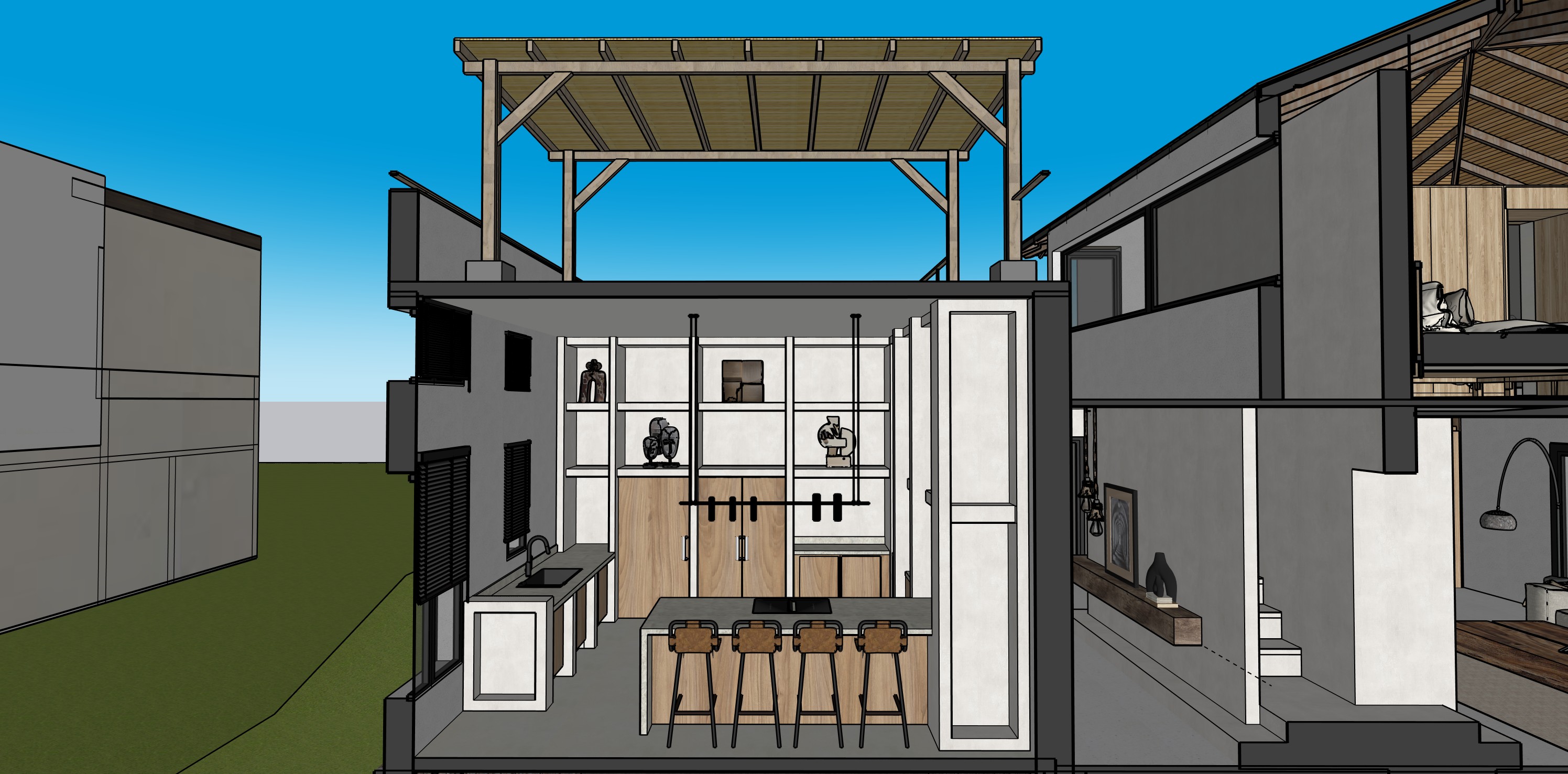 add subtle back lighting to shelfs off white terrazzo flooring off white lime painting in walls dekton sabbia in countertops