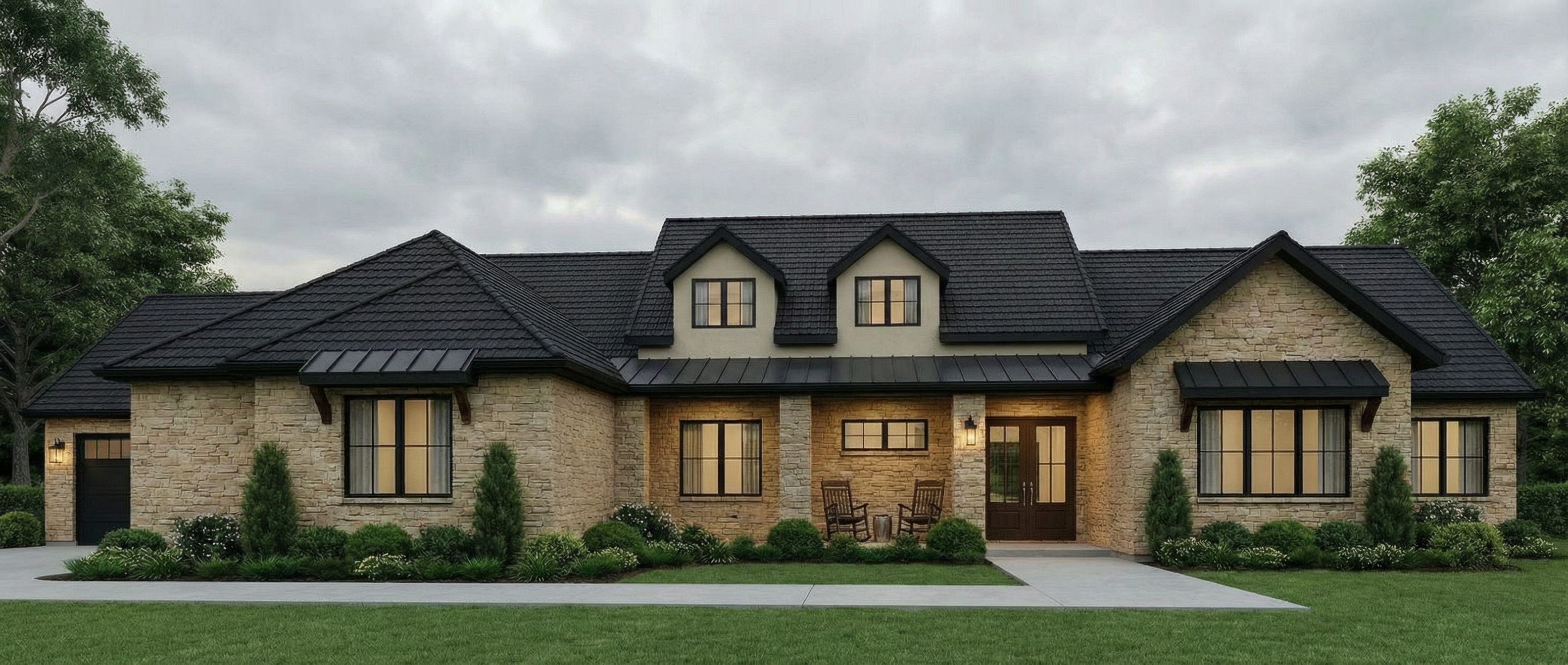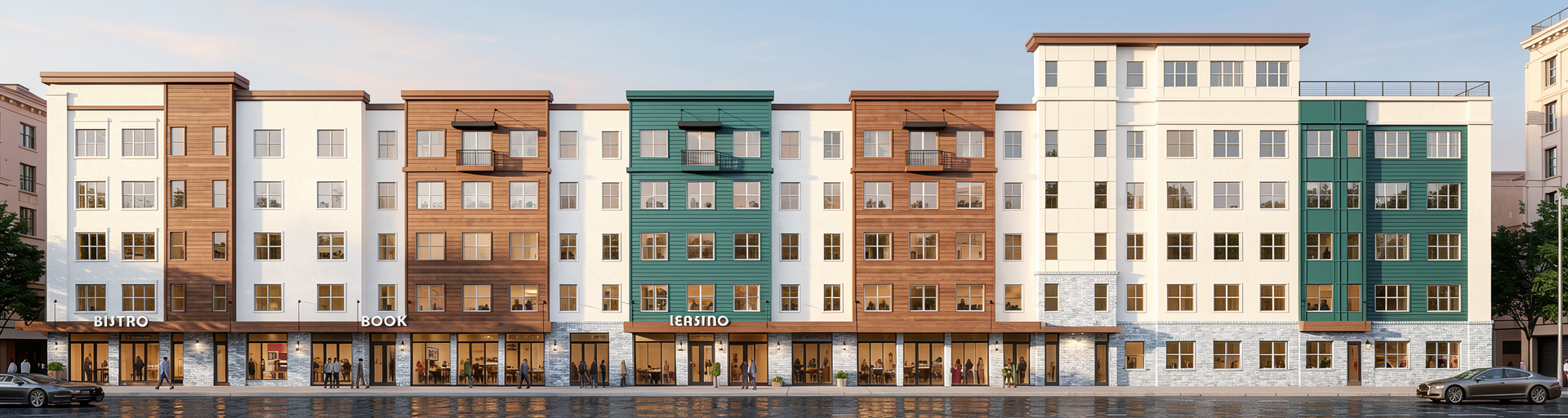 turn this rendering into a photo realistic image with ski mountain views