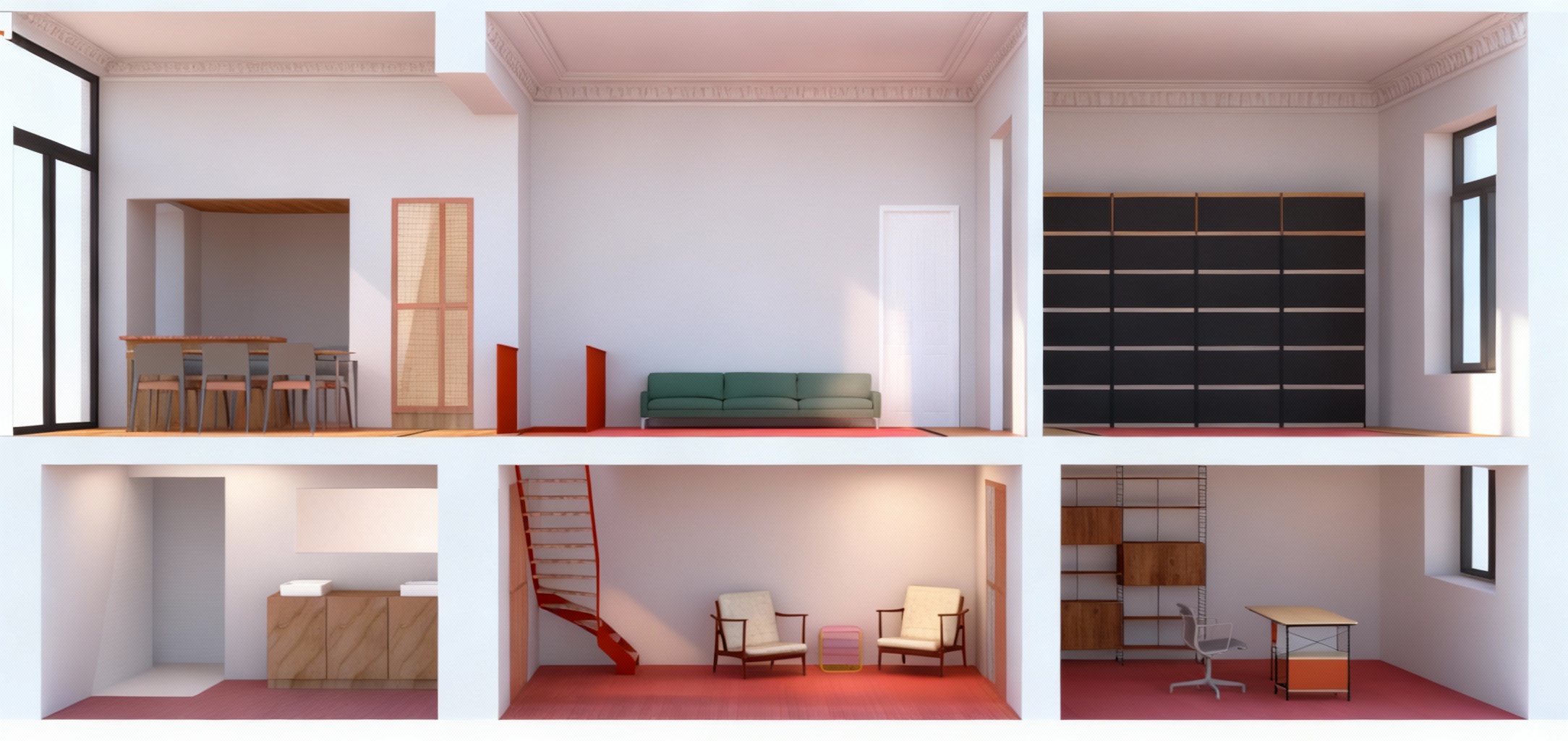 add paintings on the walls expressionsit and change the furniture to more nordic style