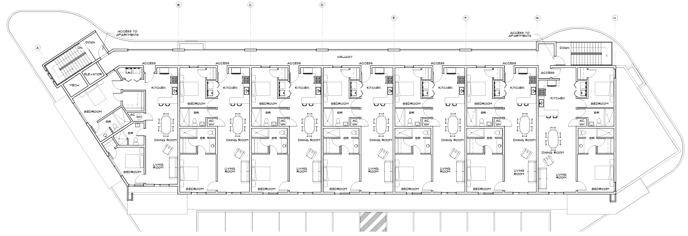 show me an realistic floor plan with high detail furniture and a little inclination forward