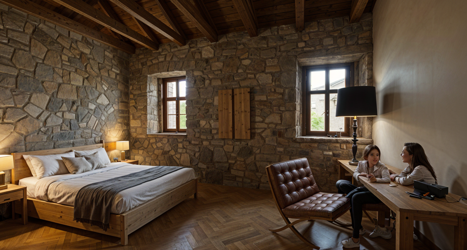 emphasis the classical elements on this modern house make the stoned cladding smooth keep the roof flat