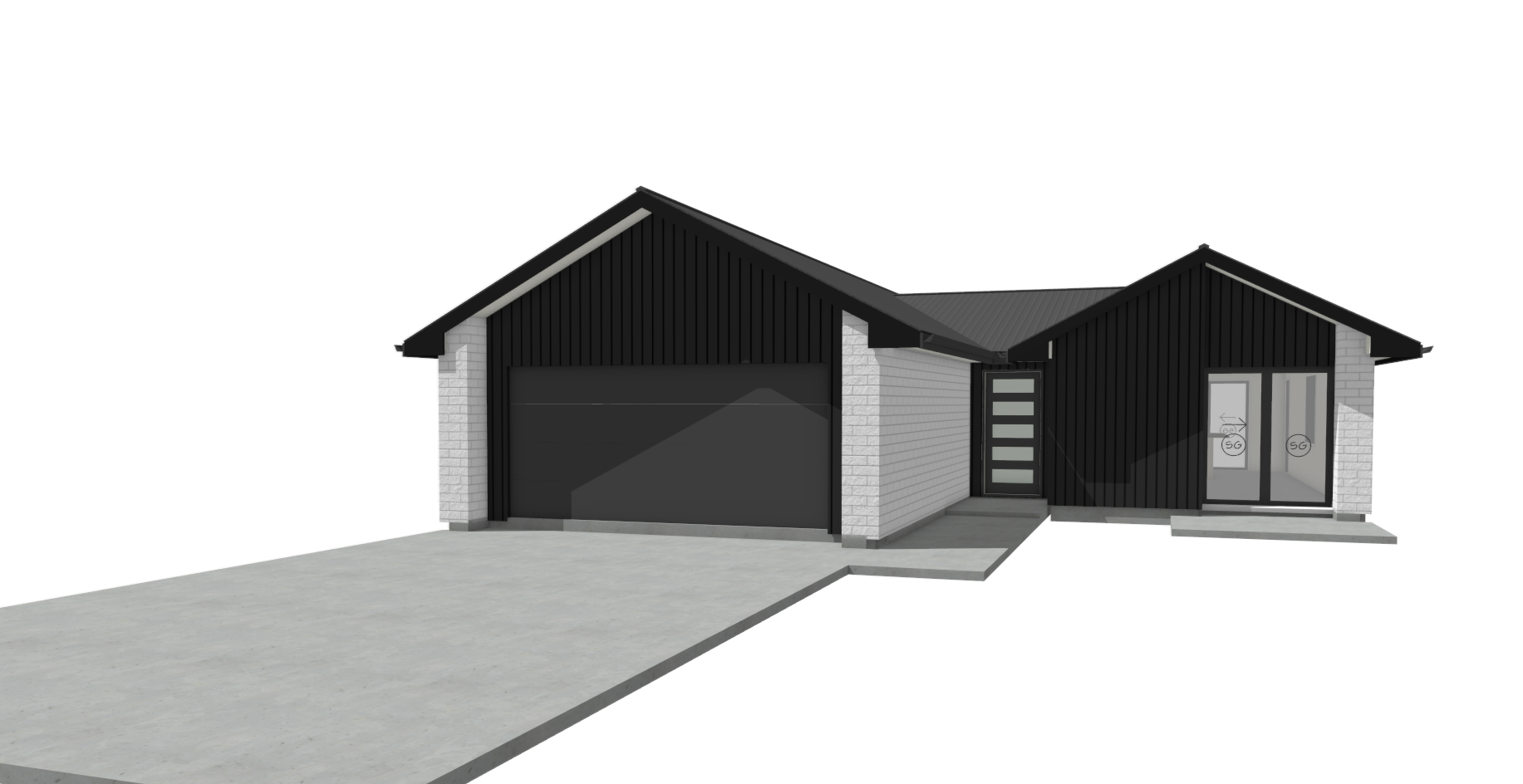 white brick black wood with a concrete driveway and fencing short grass farm outlook