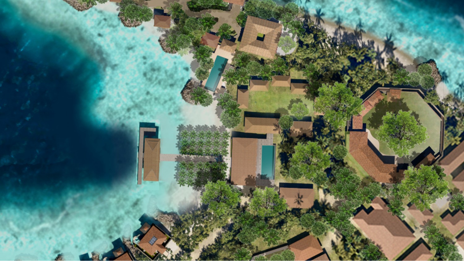 upscale to 4k retain original details but enhance to ultra photorealistic add sharpness to the roofing but enhance the texture of terracotta with shade of brown orange in small scale improve trees and palm to photorealistic