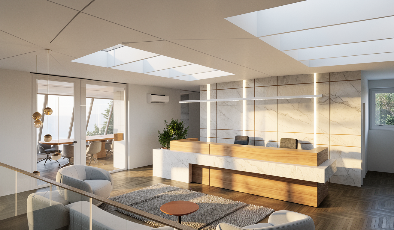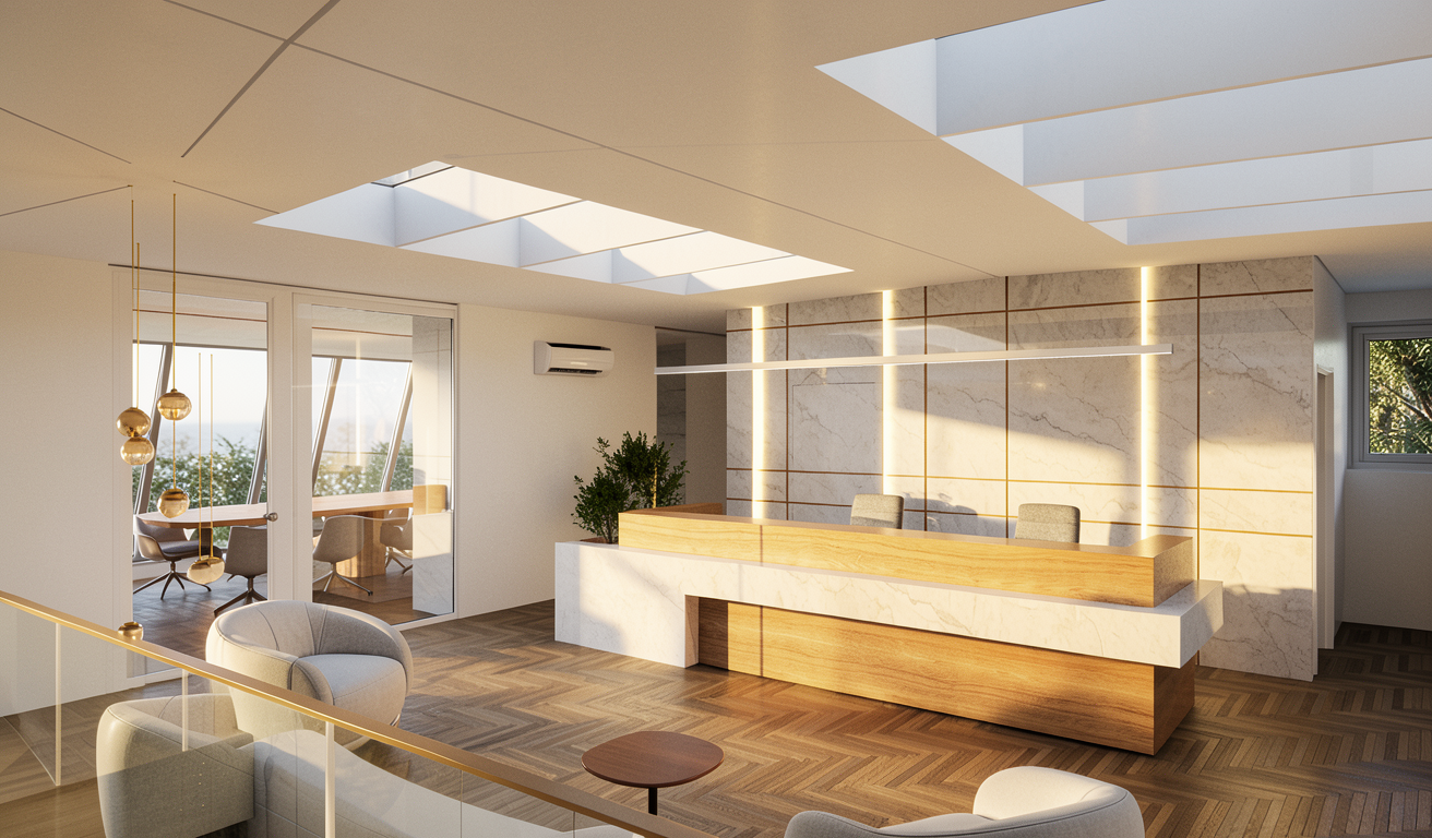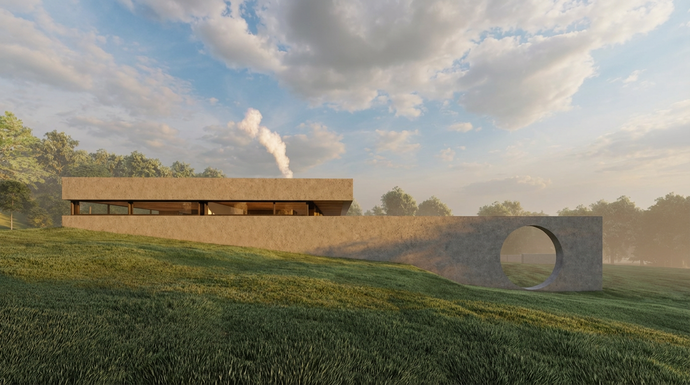photorealistic architectural rendering of a contemporary australian rural home enhancing an existing lumion base image introduce soft atmospheric depth abundant natural light with a warm low angle sun early morning or late afternoon creating gentle highlights and soft shadows the front of the building needs direct sunlight on an oblique anglerefine materiality to feel tactile and true to life timber with visible grain and tonal variation concrete with natural reflection and depth metal with subtle reflectivity and imperfections glazing with realistic reflections and slight interior transparencyadd understated warm interior lighting 2700k 3000k to create a soft glow from ensuring it feels natural and not overexposed balance interior and exterior lighting so neither dominates enhance landscaping with slight movement and realism softened edges and subtle tonal variation in grasses and foliage introduce light environmental effects e g faint haze diffused background to increase depth and atmosphere overall mood should be warm calm and evocative slightly ethereal but grounded in realism avoid overly dramatic contrast or stylisation aim for a premium architectural photography aesthetic with a cinematic softness