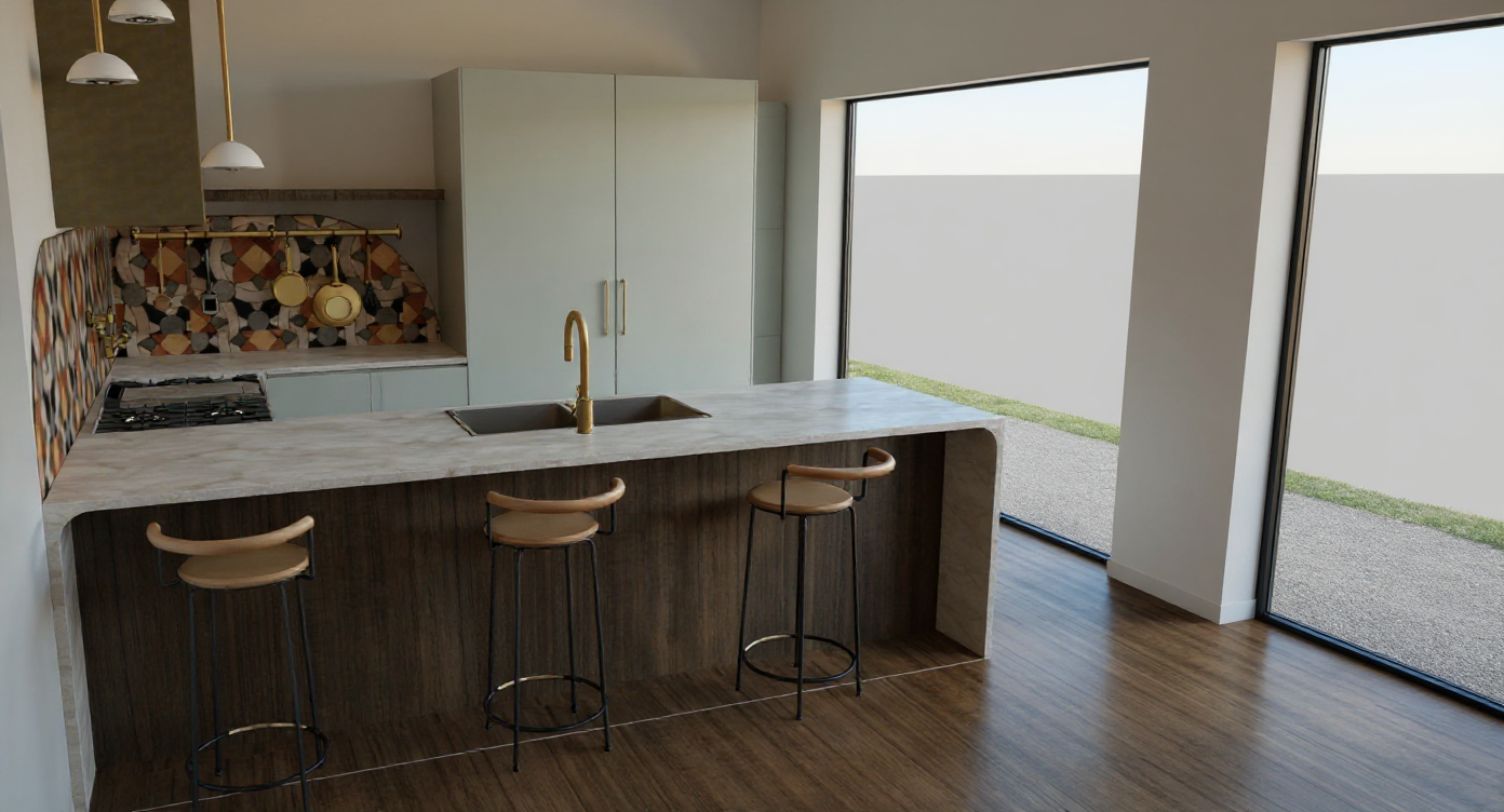 exterior shot oboji kau u zelenu stolice malo zeleno malo sme e be stolovi drveni i crni s uzorkom mraqmora na desni zid stavi tv i ukrase slike biljke dekoracije stavi malo bolje osvjetljenje neka sve skupa ima moderniji izgled