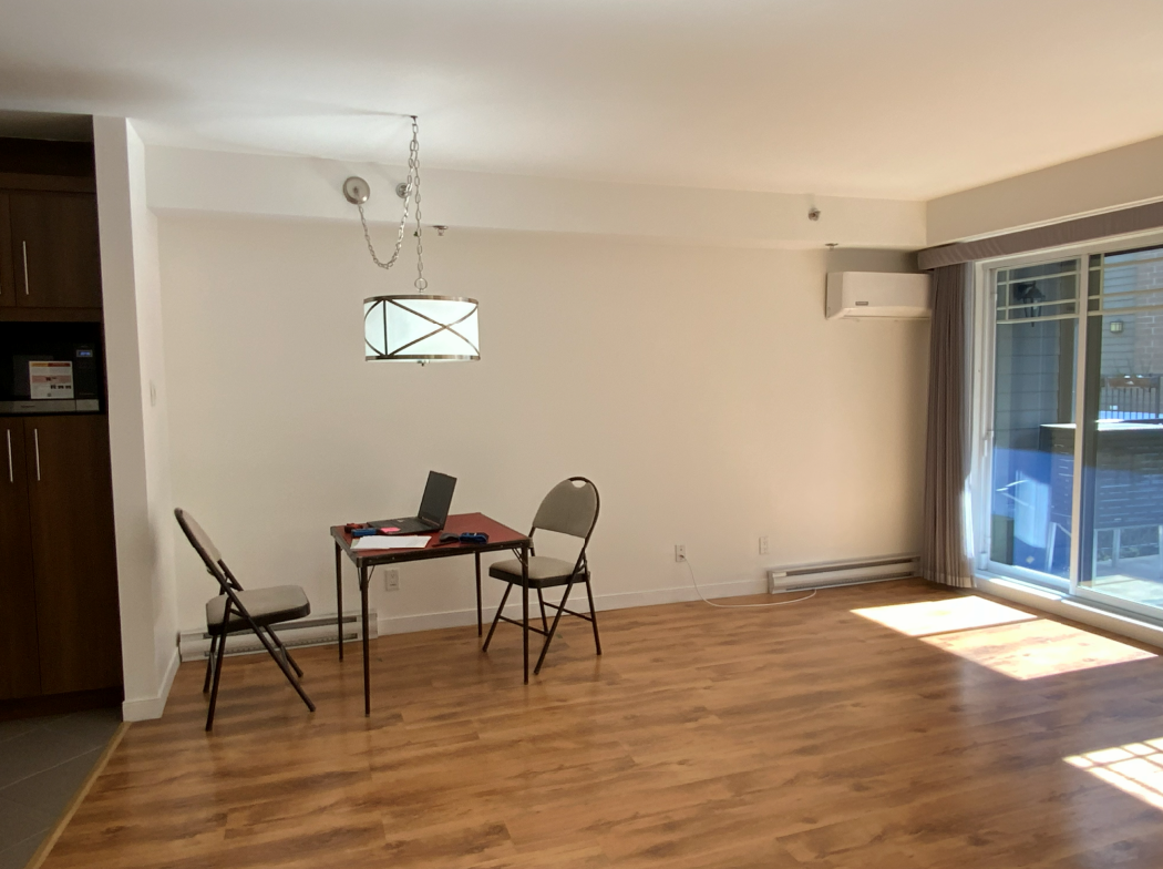 using this photo create a photorealistic 3d model of this appartment living room with no furniture chair on pendant make the room empty with a brighter light and more neutral tone please remove the pendant lighting