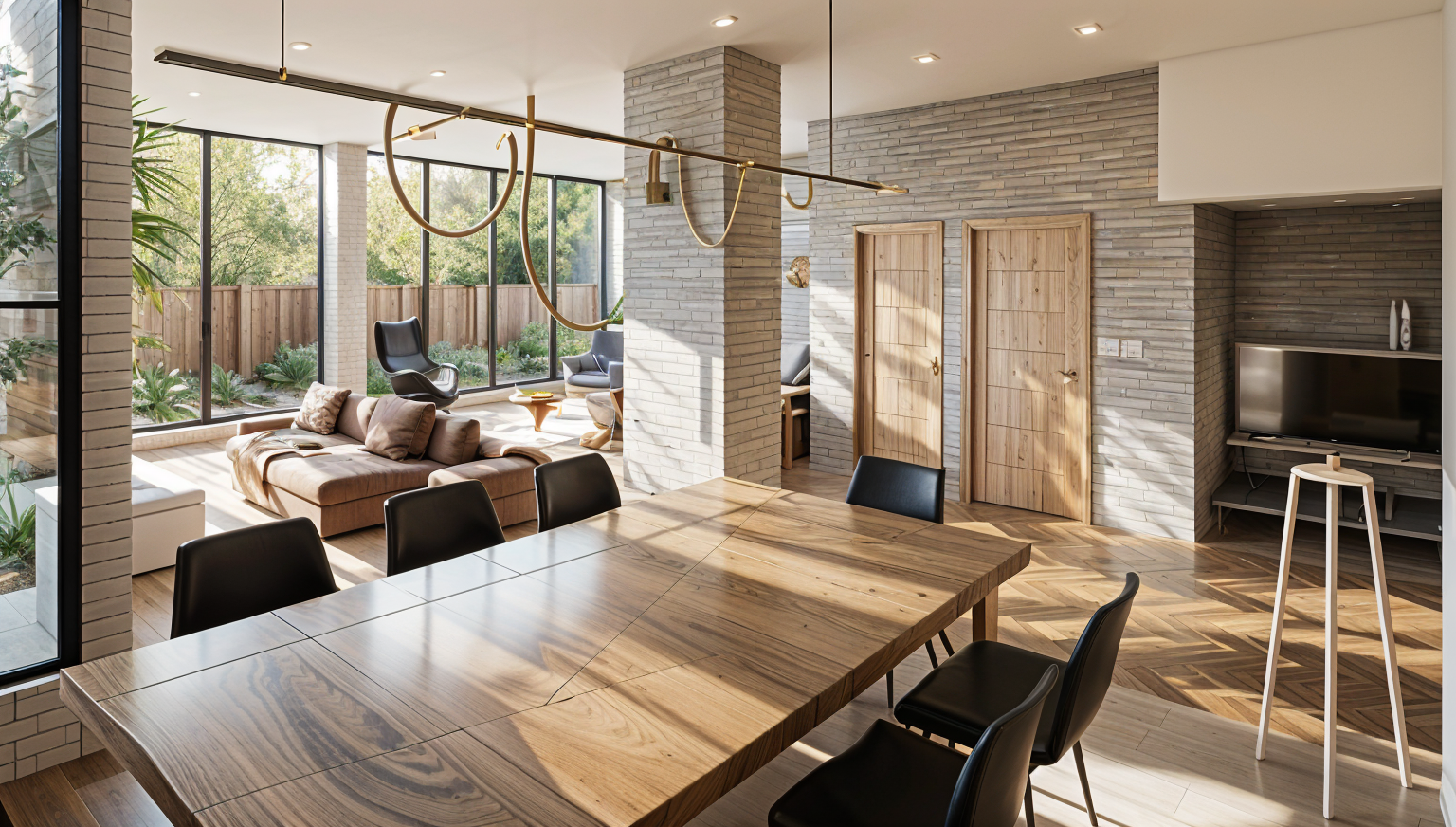 please do not change ahything shown in this image do not change the archtecture materials colors light fixtures windows or doors just enhance the lighting and make this photo realistic