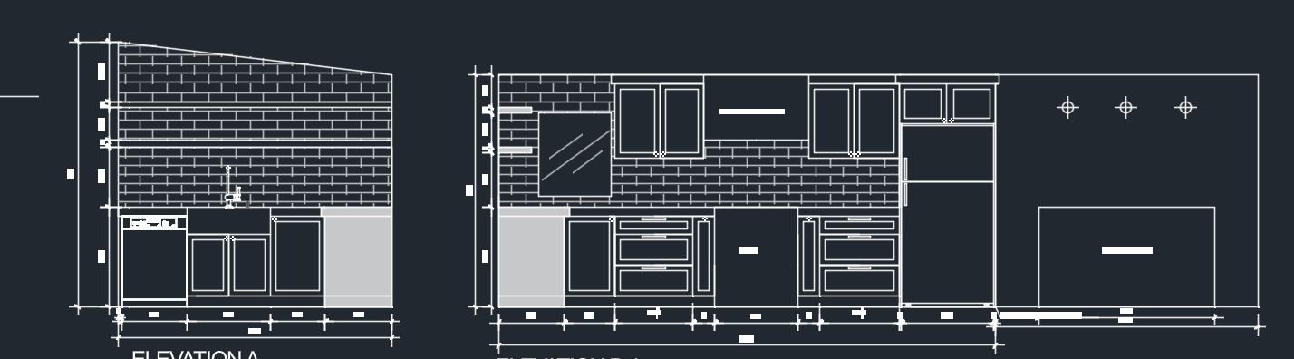 creat a redering wtih these layouts attached is floorplan and elevation of the dishwahser sink wall and elevation of the range and regrigerator wall add finishes in presentation and design rendering to this floor plan