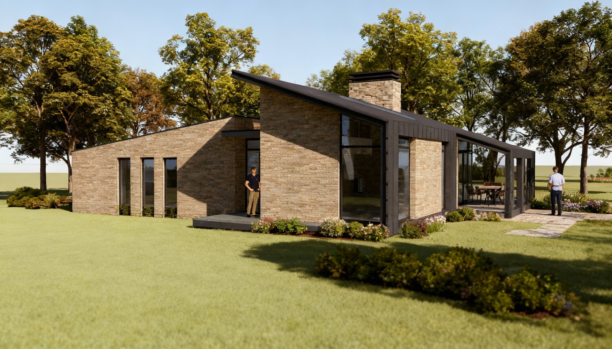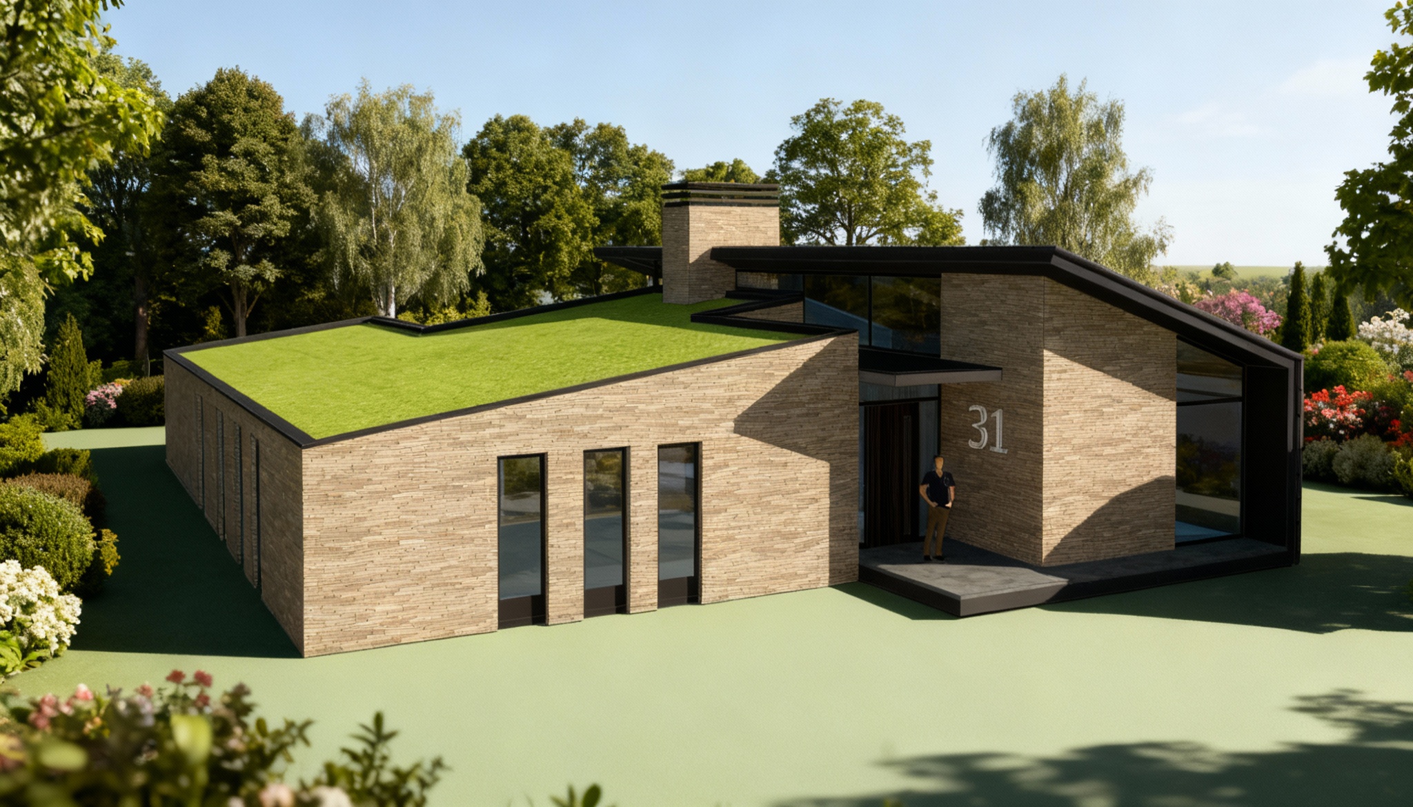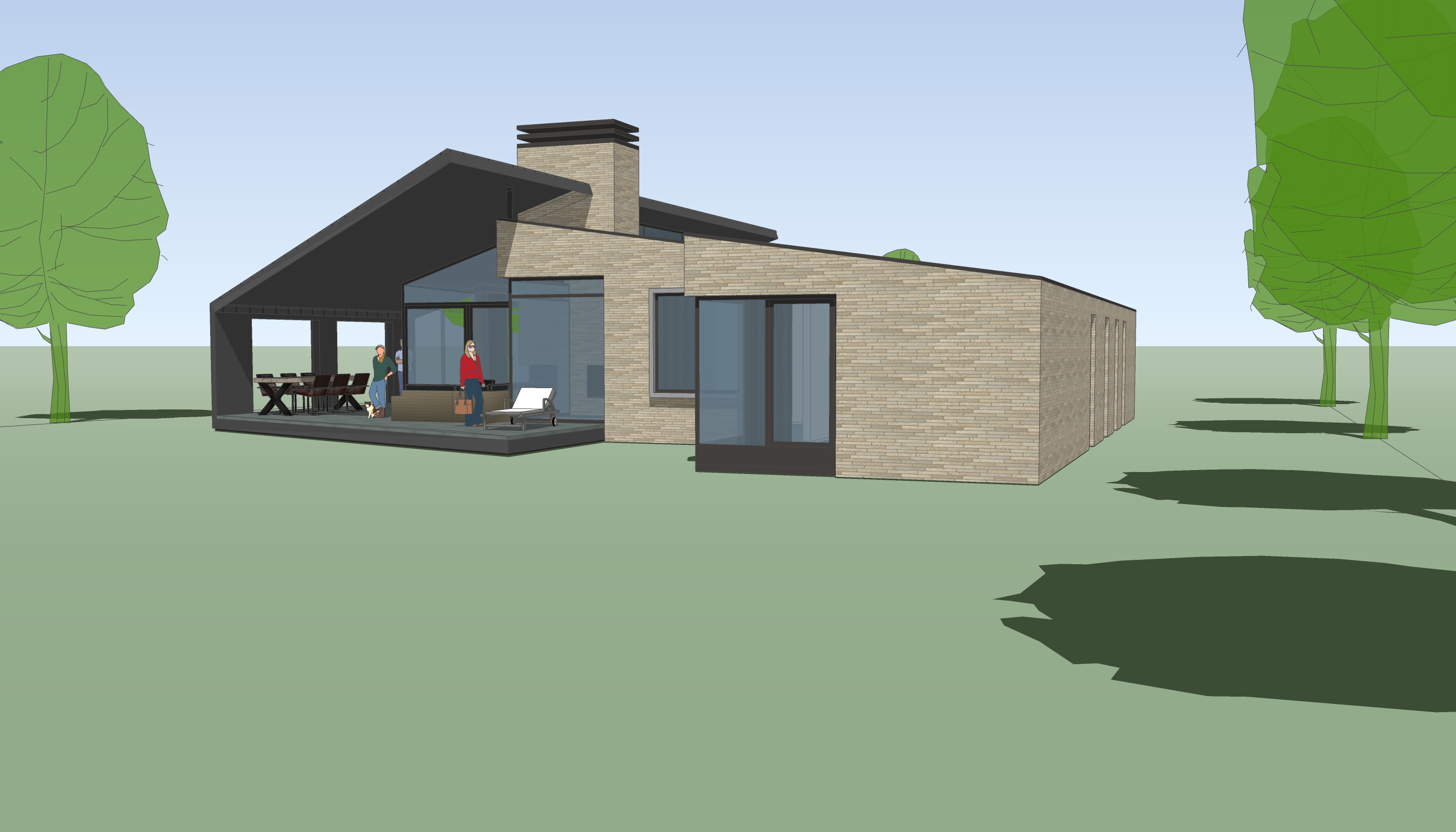 add some trees in the background of the scene also add some bushes and flowers