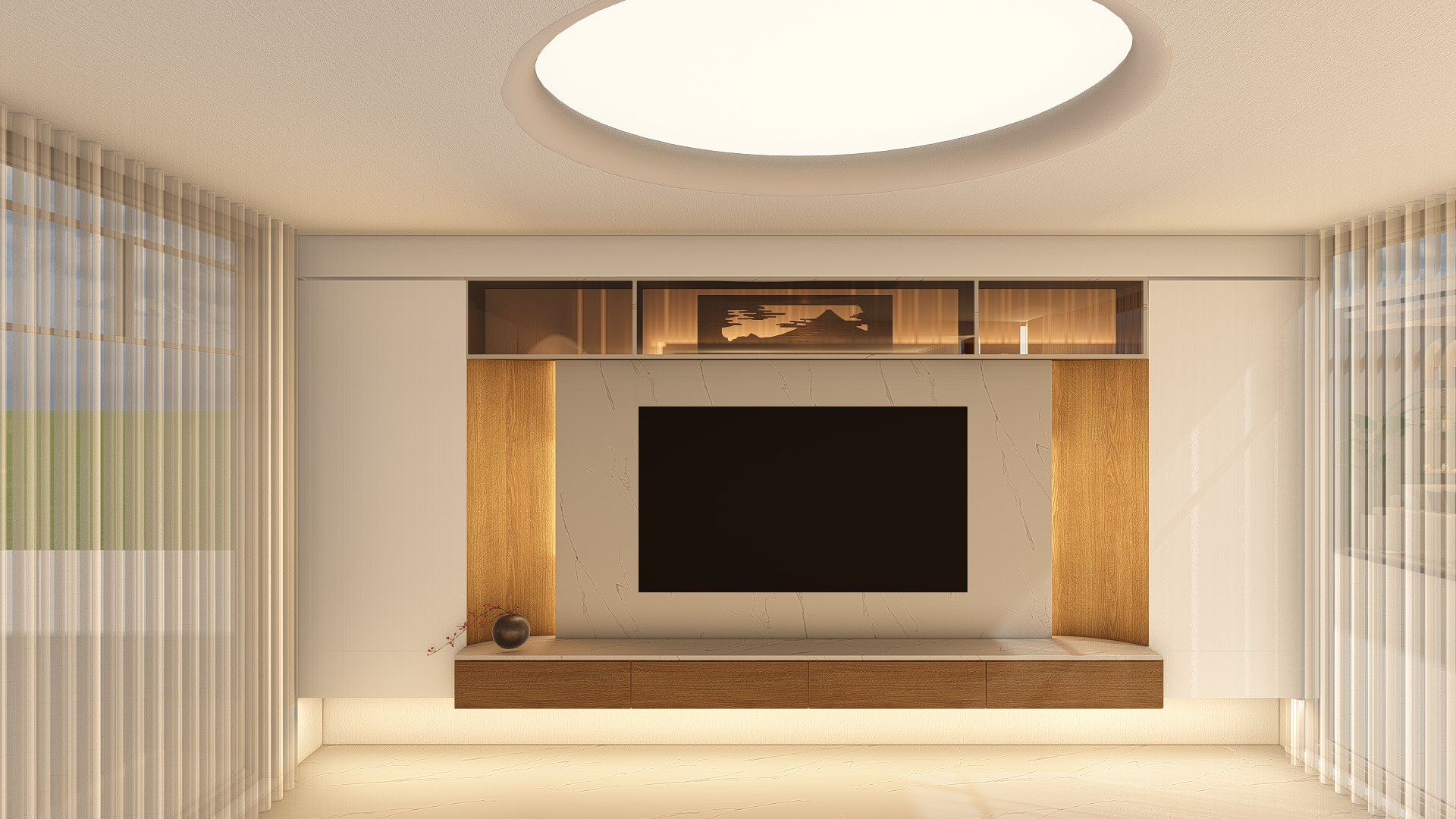 ultra realistic interior render of a modern living room same layout and furniture as reference warm diffused glow no visible light source architectural lighting detail similar to high end minimal japanese european interiors global illumination soft shadows photoreal materials 8k cinematic daylight calm atmosphere emphasis on depth and material realism no extra fixtures no spotlights no chandeliers