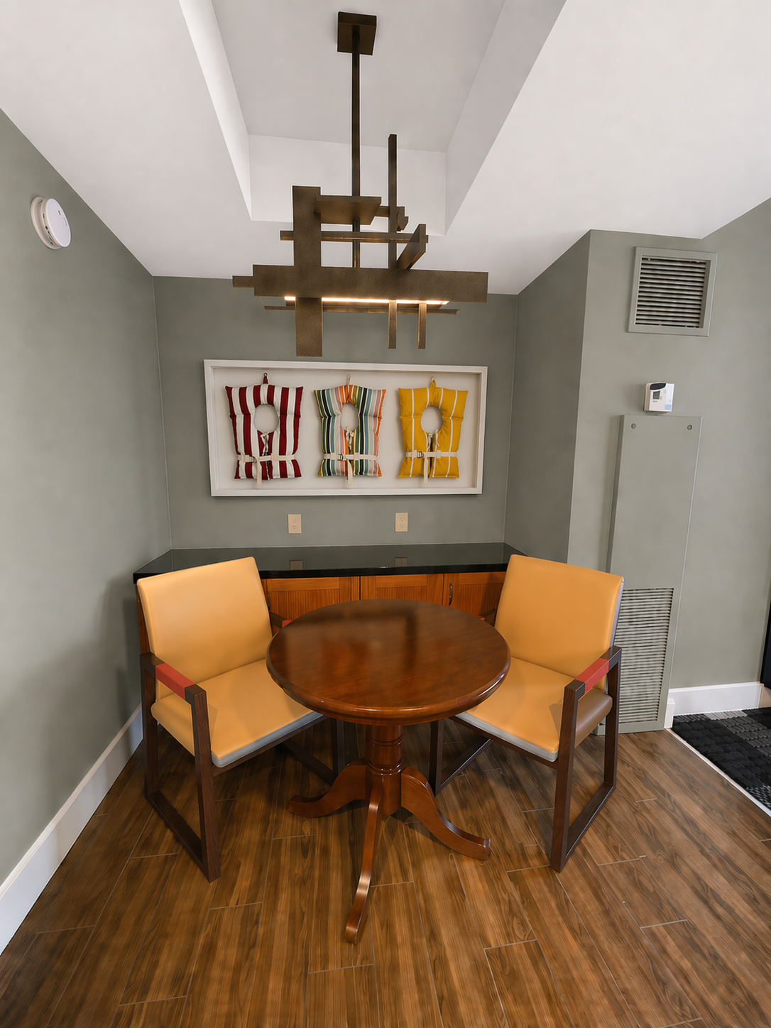 render this image as a high end photograph with realistic lighting coming through the window make the image look photorealistic and high quality do not change any furniture architecture carpet lighting or wood finishes render the image exactly the same as the attached image