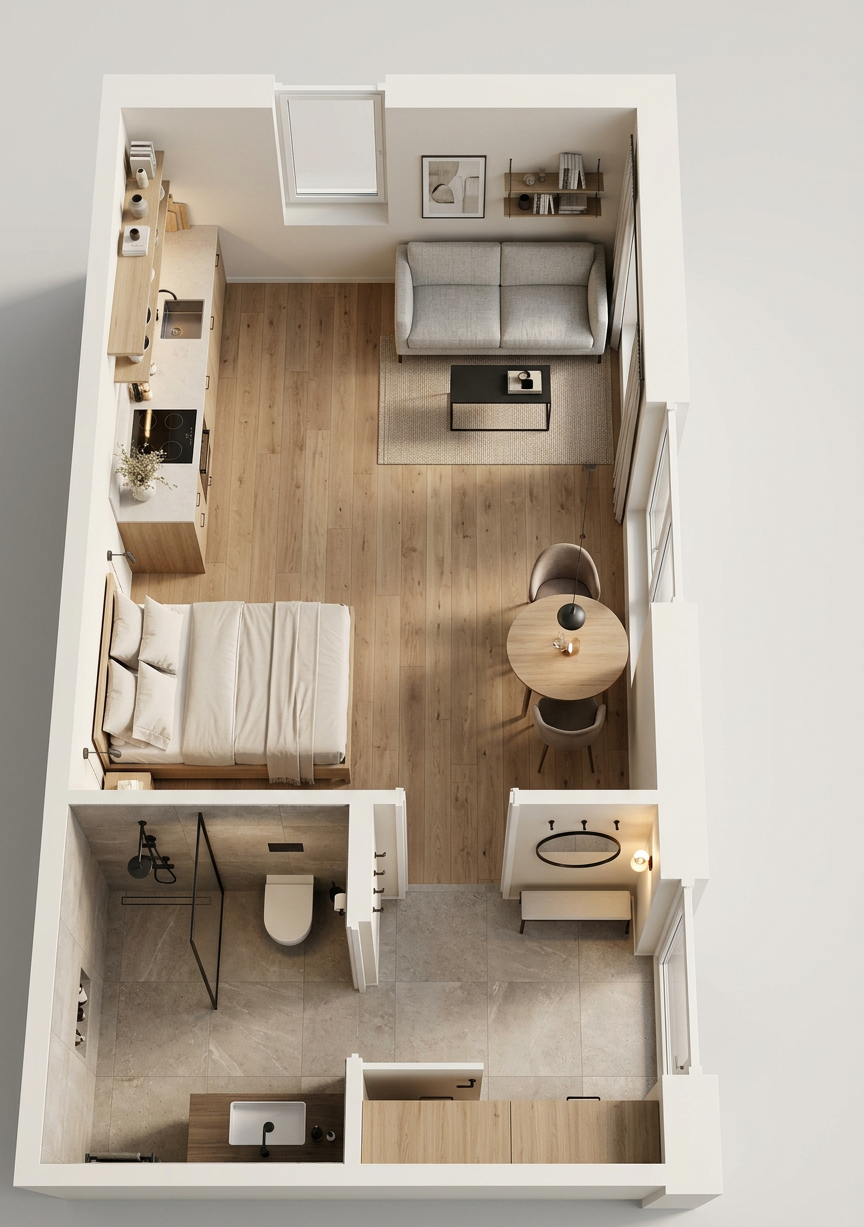 keep all existing elements in place remove the small pine trees on the terrace open the swimming pool remove any cover if present and ensure the water surface is clean realistic and visually consistent especially on the left side where reflections should appear natural and undistorted add a person lying on a lounge chair with a glass on the table and a book nearby open all parasols open the curtains inside the house to let more natural light flow through the interior create a bright sunny sky with natural daylight balanced exposure and soft realistic shadows
