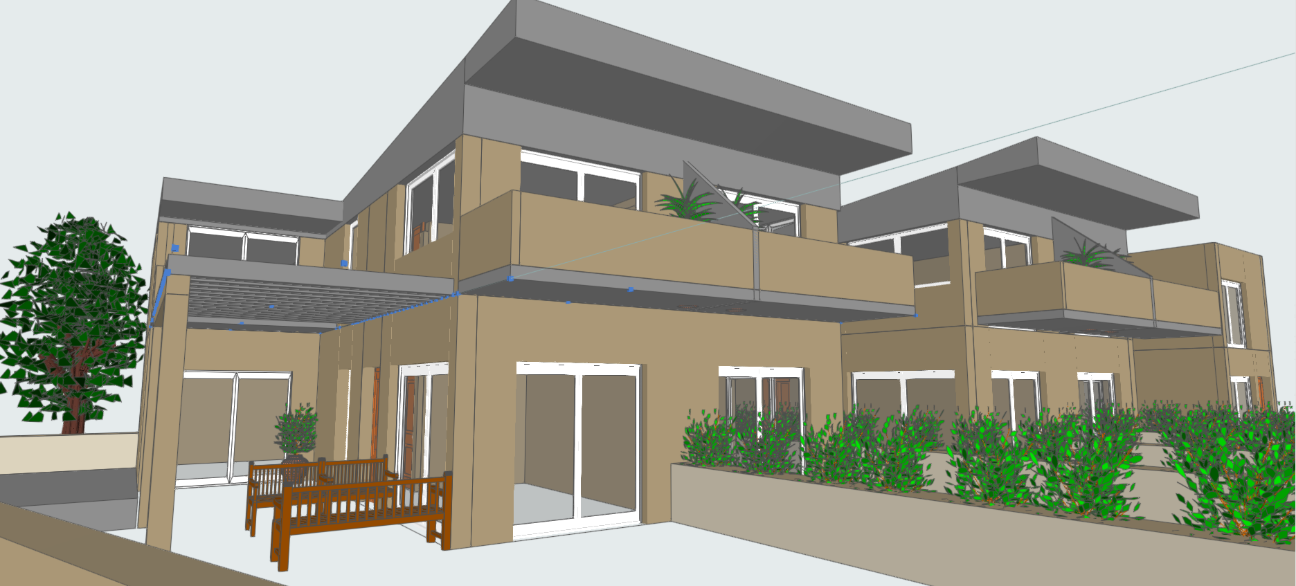 exterior shot exterior render into a photorealistic summer house in nikiti greece keep exactly the same geometry structure windows openings and camera view do not change the building shape or proportions use warm mediterranean summer light late afternoon feeling add natural outdoor landscaping with olive trees and mediterranean plants style minimal modern greek summer house calm and elegant use realistic architectural photography look 24 35mm lens natural colors soft shadows high realism clean composition professional architectural visualization add pool on the left do not change geometry proportions windows or camera angle no redesign no added elements no distortion no people no cars no text no fantasy no stylized or cartoon look no tropical plants no palm trees no night scene no heavy filters no oversaturation
