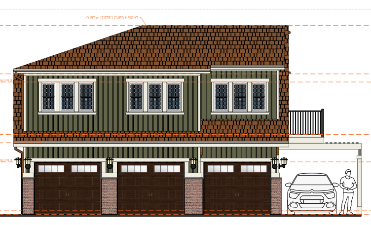 place building at rear of lot facing gravel lane on a 50 wide residential lot with a neighbour s yard with a fence to the left north and open park with trees to the right south sun is coming from the south right midday partly cloudy skies show sky show clouds viewer is facing east wide angle viewer is about 20 from the building