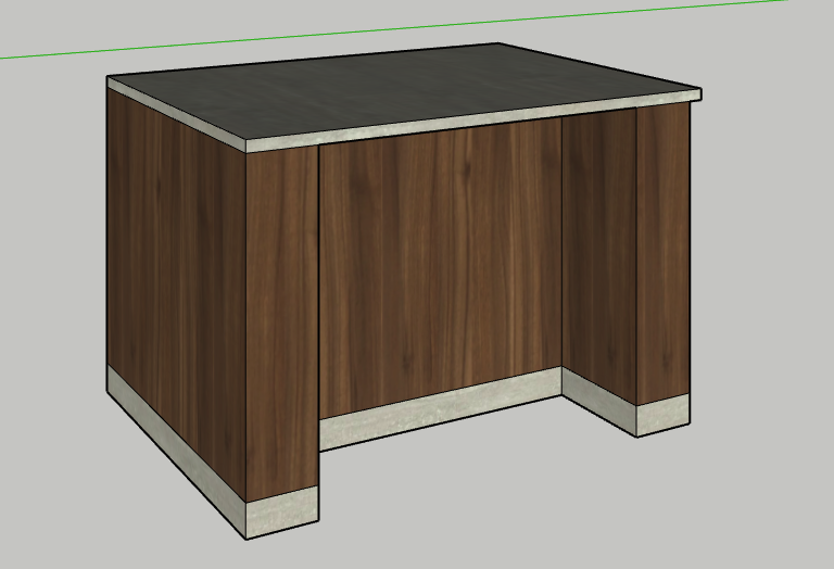 a kitchen island in dark to medium walnut with a travertine worktop just a white background