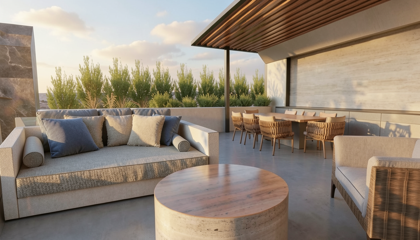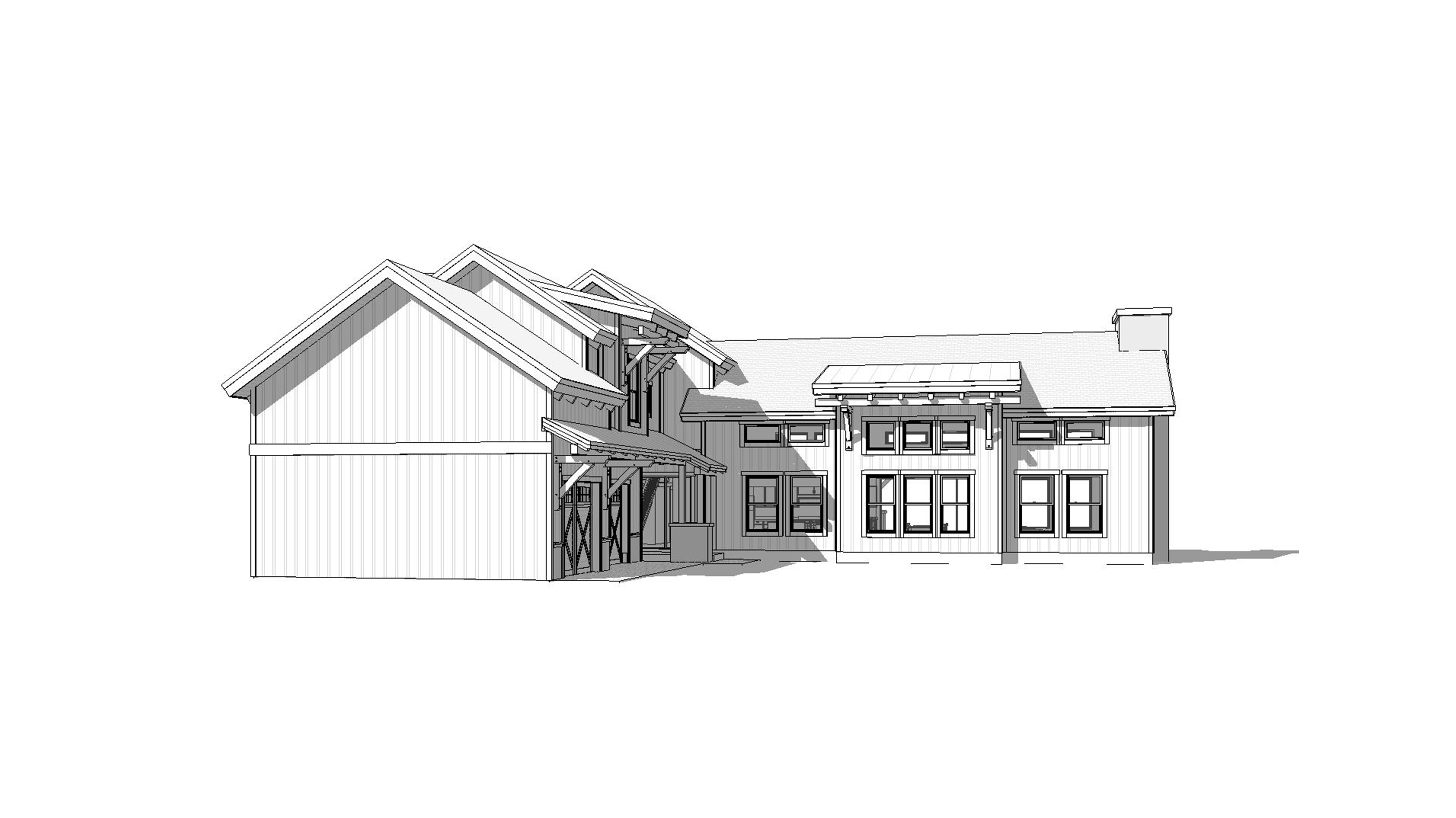 clean mountain modern timber architectural exterior rendered in cinematic vibrant golden hour lighting with vibrant blue skies and fluffy white clouds mountain modern with heavy timber architectural style select grade horizontal cedar wood siding beautifully lush green manicured landscape around structure with hedges and gardens black standing seam metal roof prominent cinematic lake with mountains surrounding it in the background high fidelity photorealistic visualization crisp shadow falloff refined facade geometry soft atmospheric depth premium architectural photography mood ultra clean composition and materials dark trim around windows concrete driveway leading up to the house and garage doors