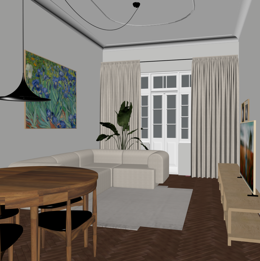 make realistic render from this view add gentle day sunlight
