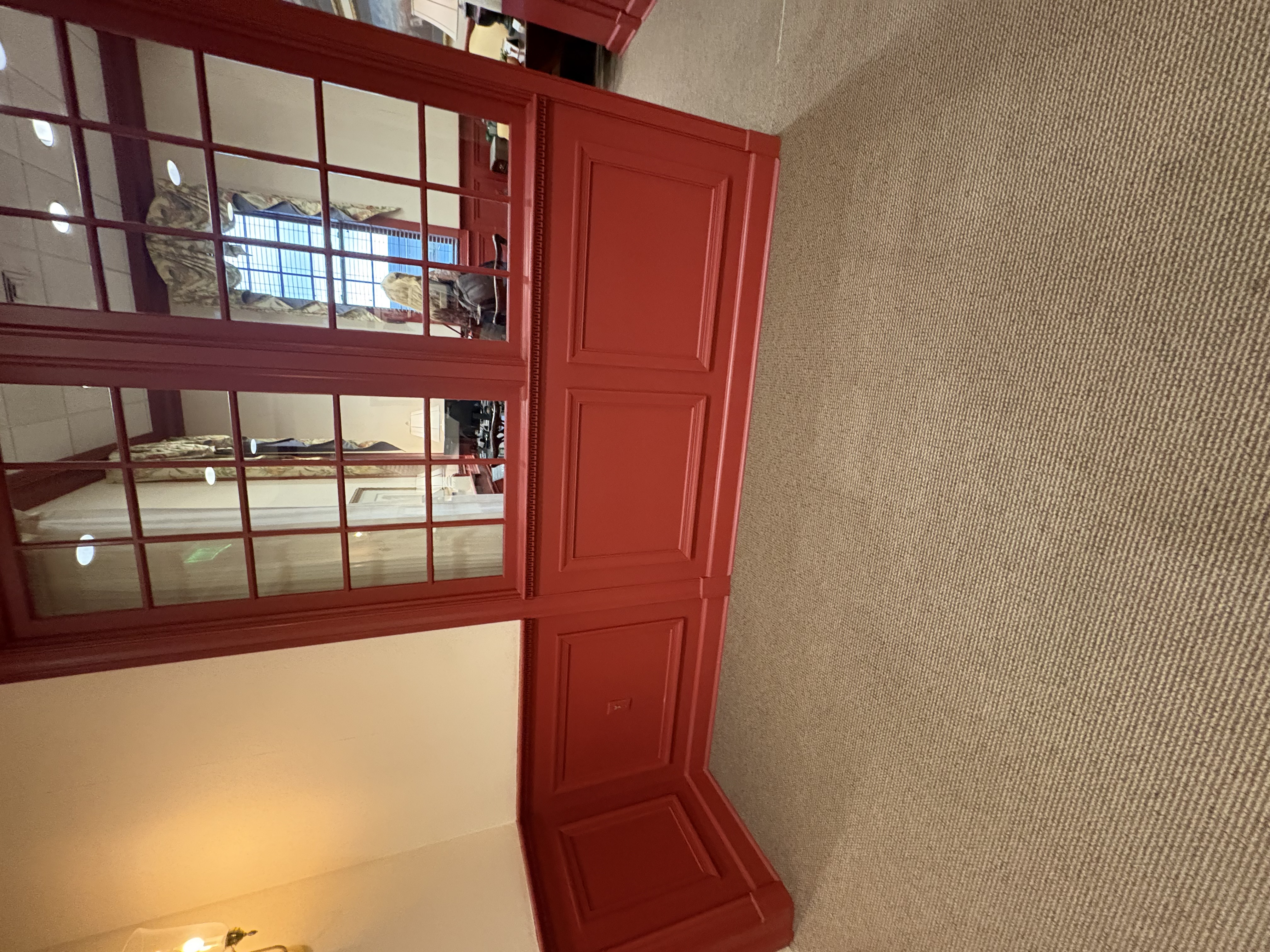 put pattern on floor below red wainscotting keep room photo as is