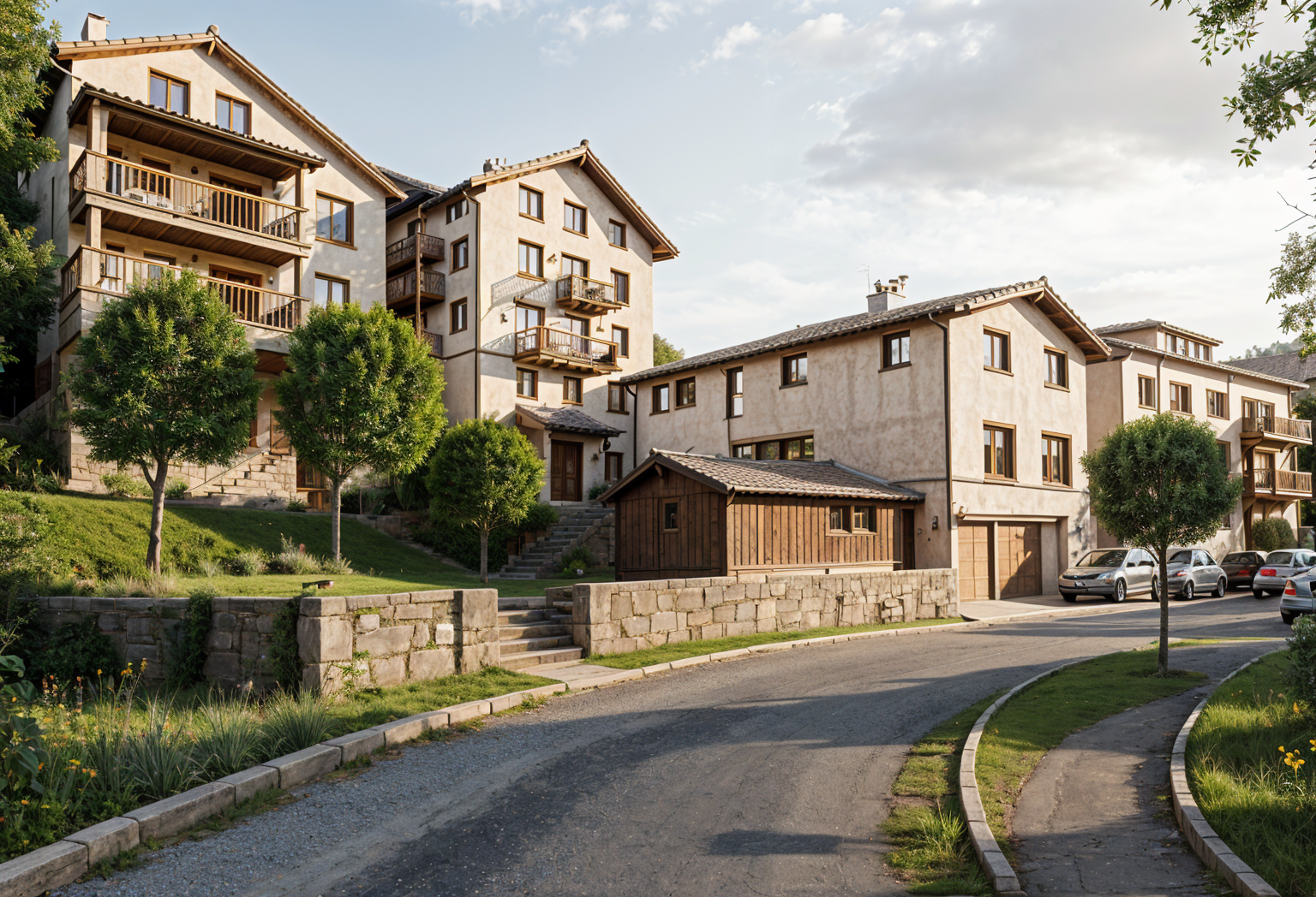 sketch turned into a realistic render village setting reference image used only for materialization and environment