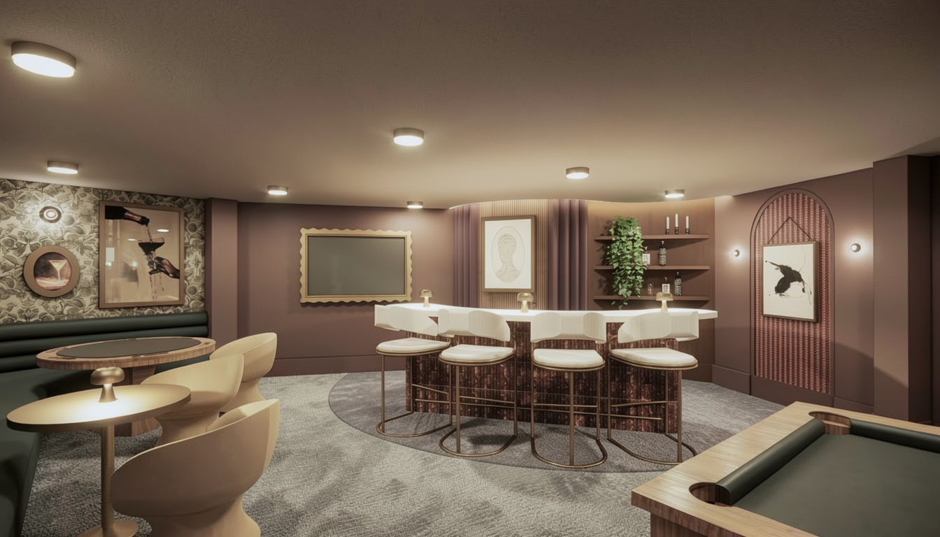 enhance the quality to photorealistic change the atmosphere to a warm and cozy early summer evening ensure the interior furniture is clearly visible through the lighting