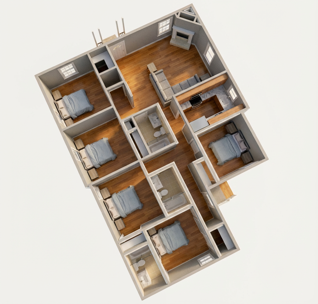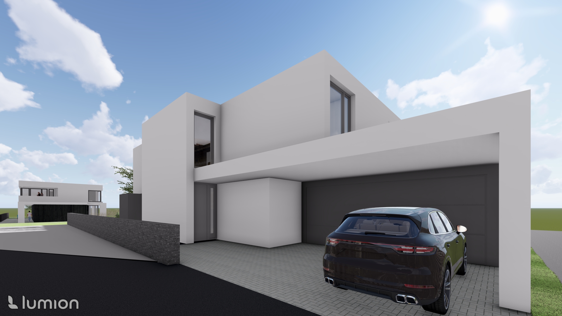 create a realistic image add a men infront oth the door add 2 3 small birds in the sky