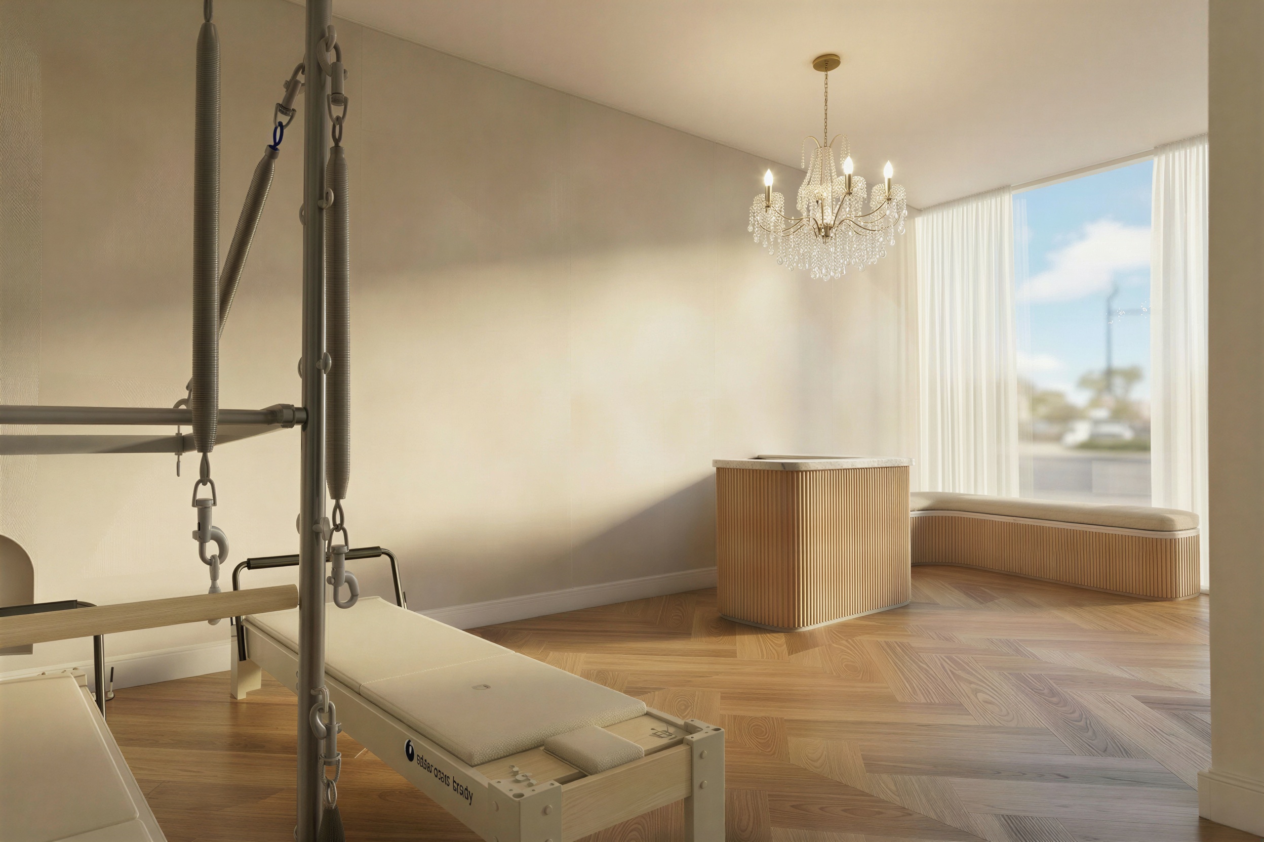 keep everything as is but add the circle with the logo behind the desk that looks like the refernece photo