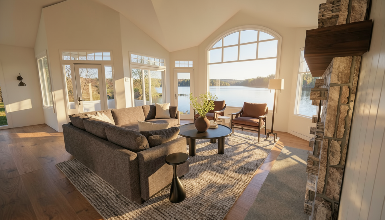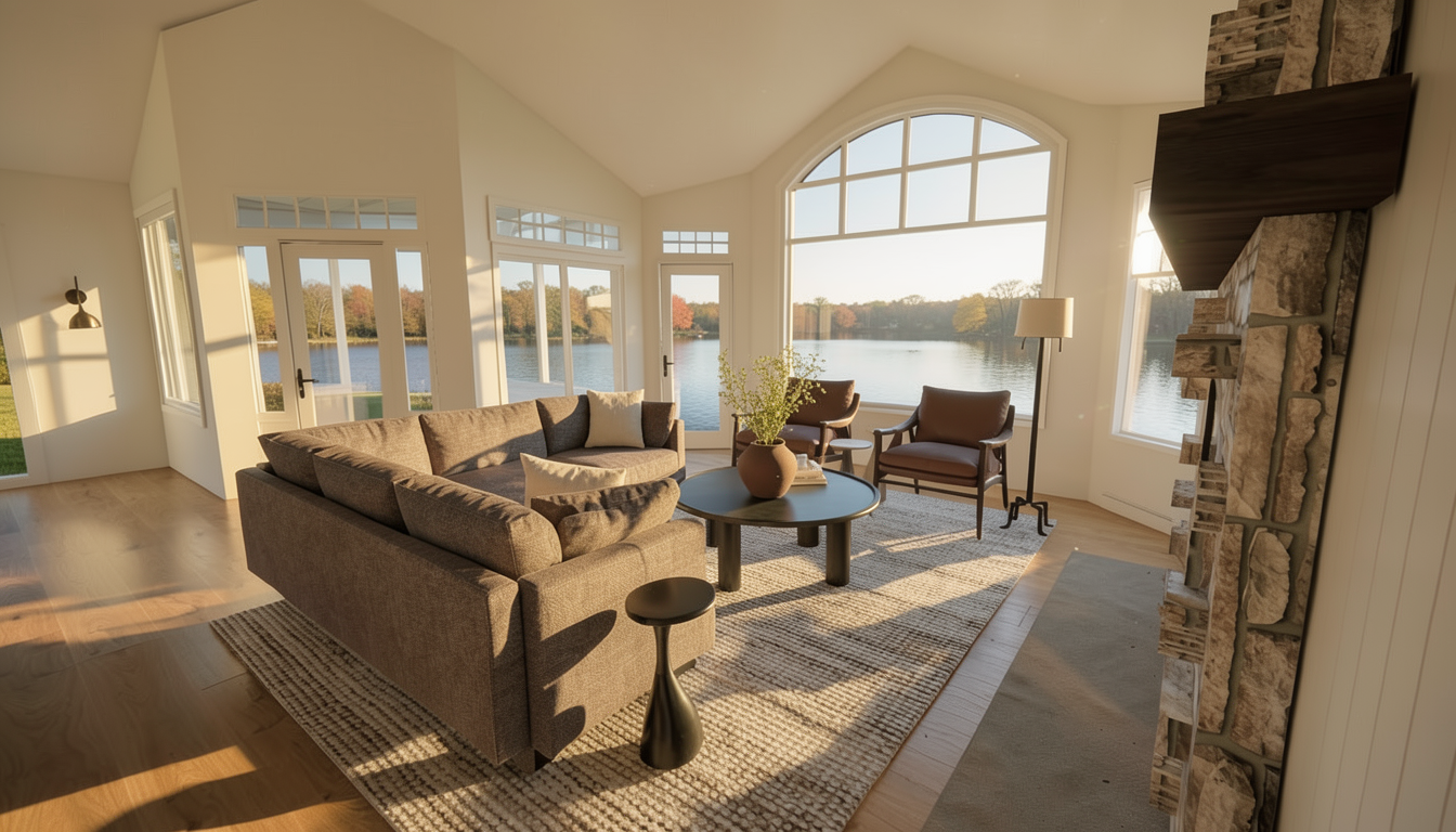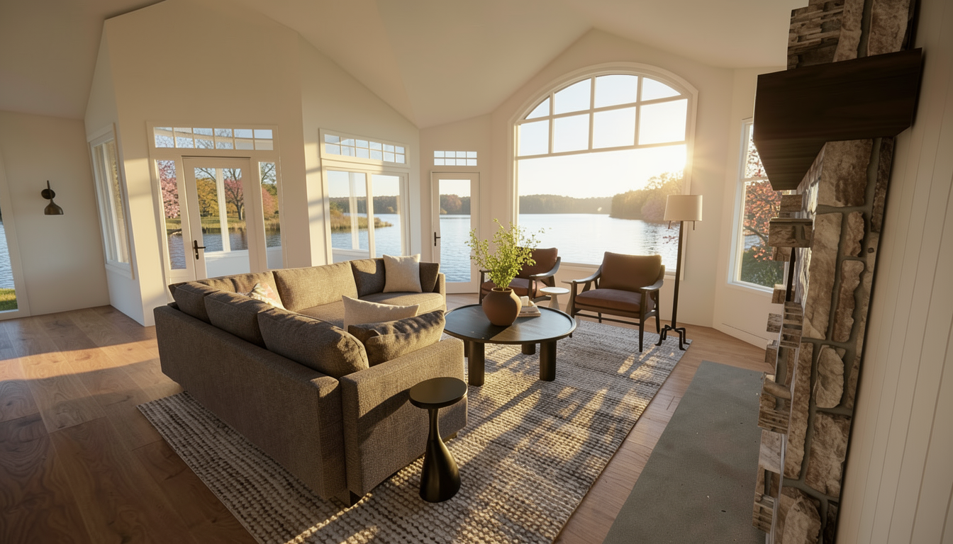 add lake to background afternoon sun spring
