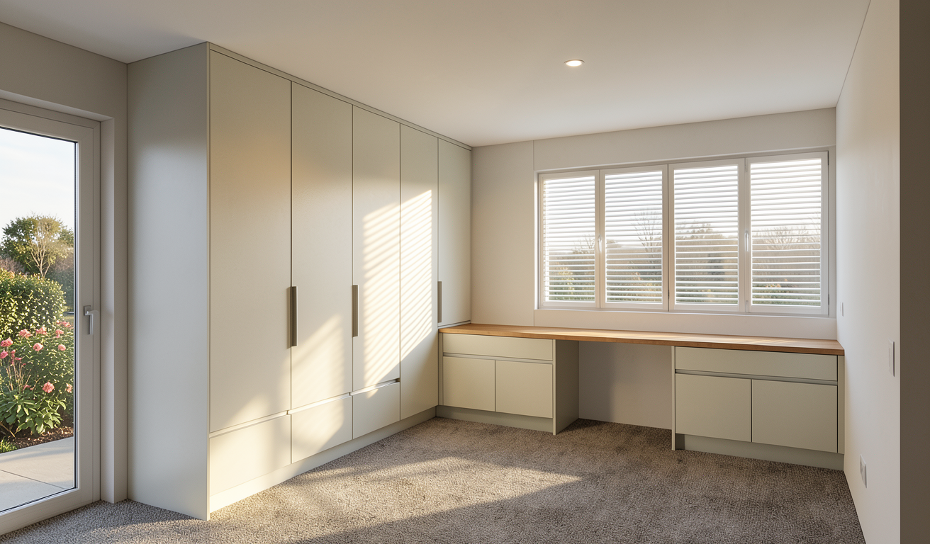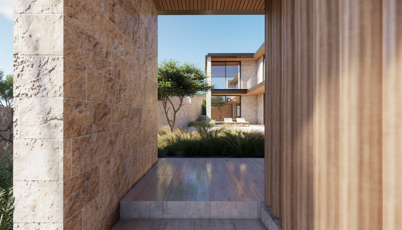 important do not change the geometry proportions or camera position only improve materials lighting and interior styling goal create a high quality interior architectural rendering that looks like a professional architecture photograph the atmosphere should be minimal calm and refined inspired by japanese and scandinavian design japandi style interior materials structure visible black steel beams and columns matte finish ceiling light natural wood clean texture and warm tone floor light wood flooring similar tone to the ceiling walls smooth very light gray walls almost white matte finish kitchen cabinets matte gray minimalist cabinetry kitchen countertop marble surface elegant and clean interior styling install black led profile lighting under the steel beams creating soft indirect light place minimal kitchen elements on the countertop bowls cutting board simple kitchen objects add a dining table in the space minimalist design place casual framed artwork on the walls exterior view through the windows outside the window there are trees and mountains soft natural light coming from outside a roof overhang eave and an exterior wall clad in dark wood are visible from the interior style and atmosphere minimalist composition japanese and scandinavian aesthetic japandi calm and balanced atmosphere natural materials and soft lighting photorealistic architectural interior rendering