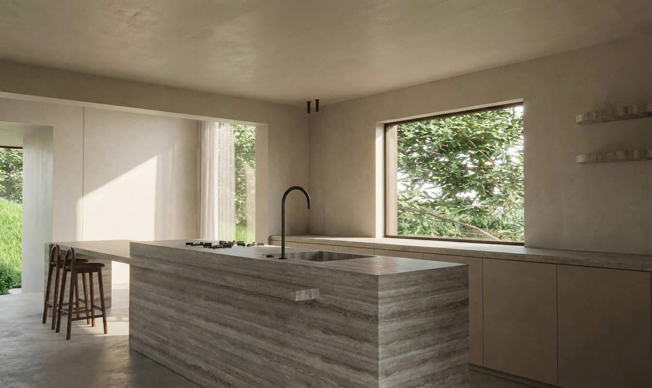 coastal replace background sky with a sunny blue sky with puffy clouds add florida lawn and landscaping on both sides of the yard change driveway to pavers add grand oaks in the rear yard add royal palms along fence line keep water in rear driveway is wet from rain
