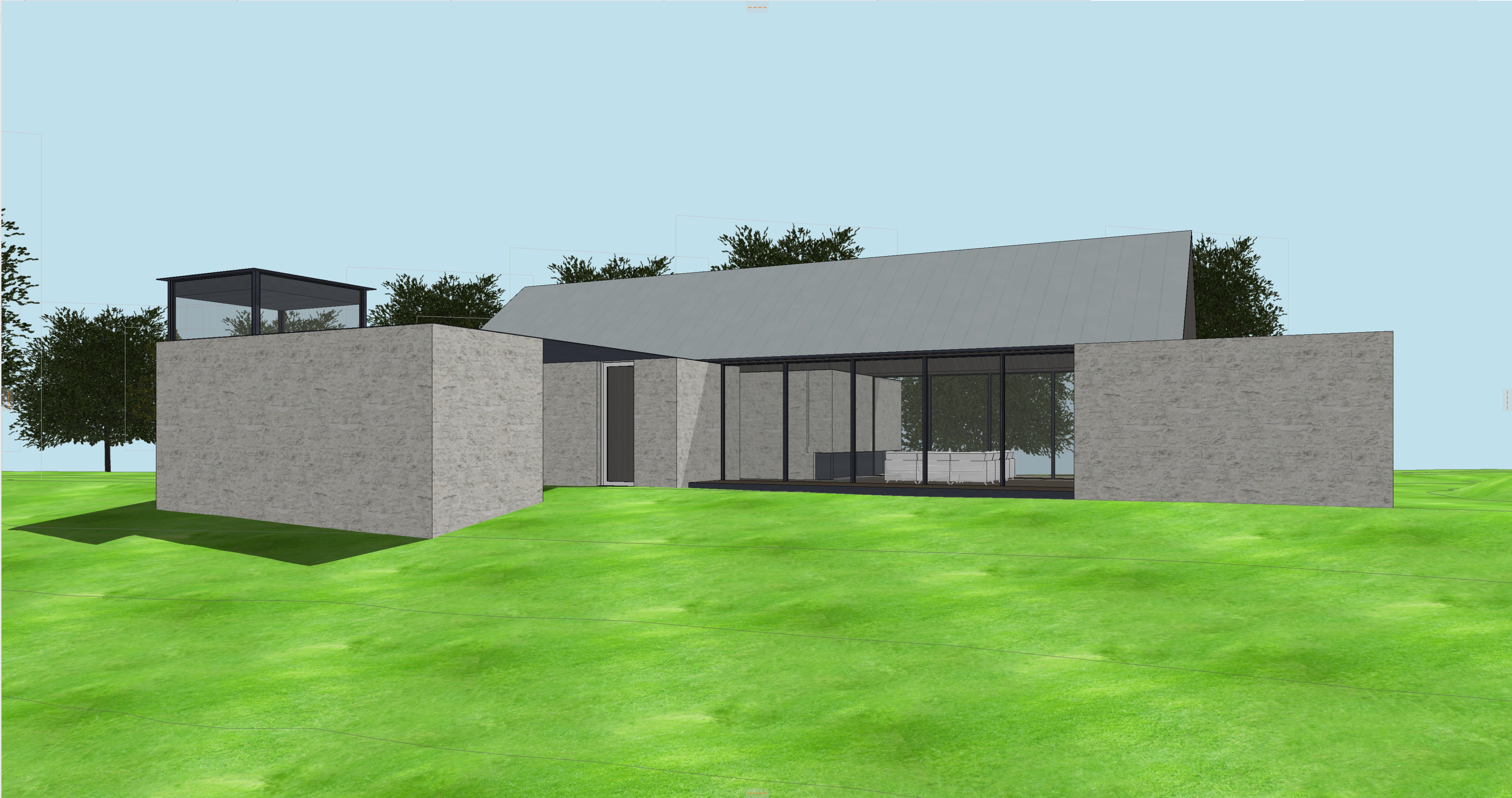 white stone with semi rough grout add trees