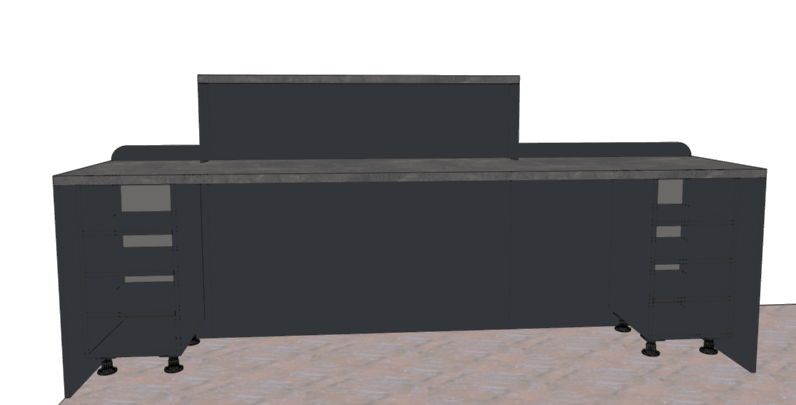 sprav vizualizaciu dodrz farby pod pracovnou doskou su skrinky s otvorenymi policami