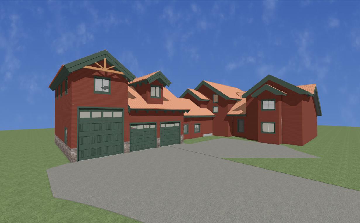 mountain home with fir trees in the background hills in the distance add landscaping to the foreground