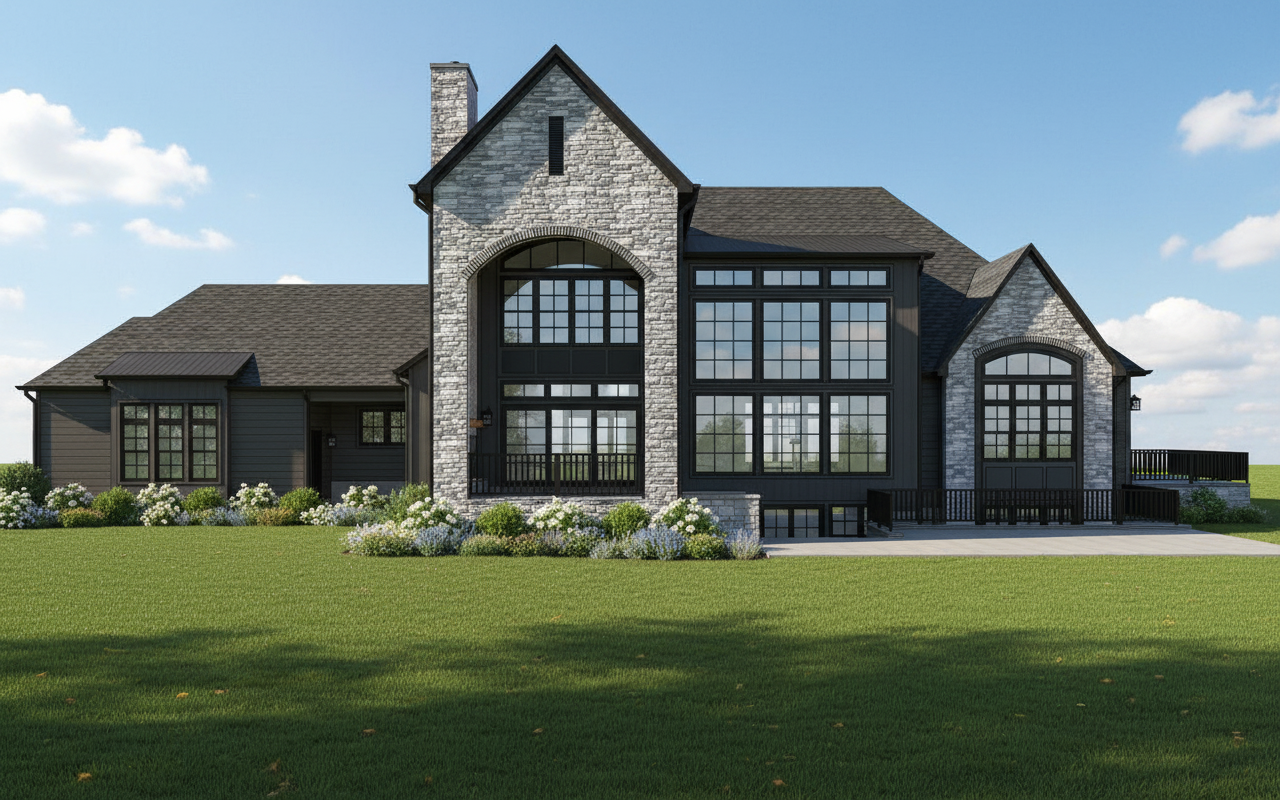 modernist exterior shot modern spanish ivory stucco natural stone bronze windows deck architecture