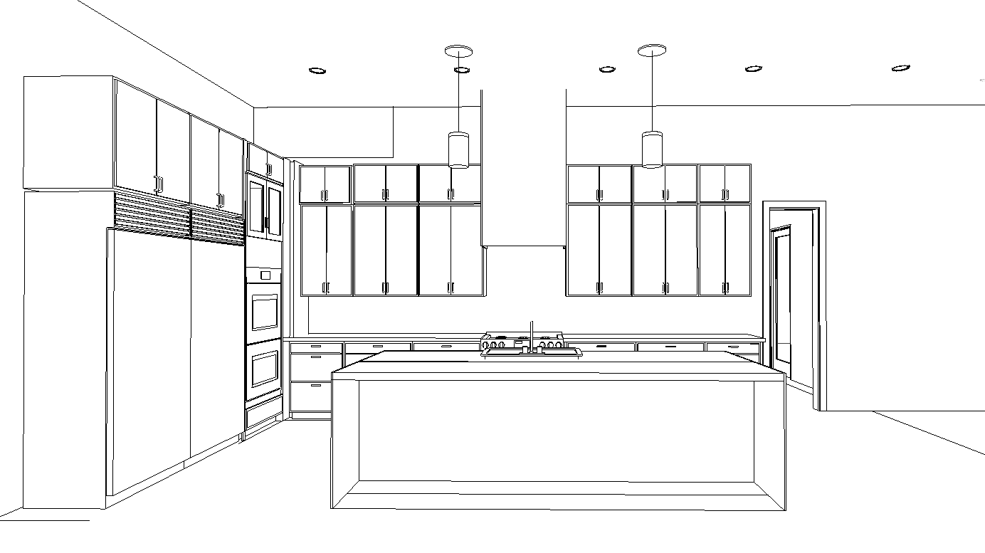 modern farm house kitchen white oak and glass cab white counter tops under cad lighting to pendants lights over island