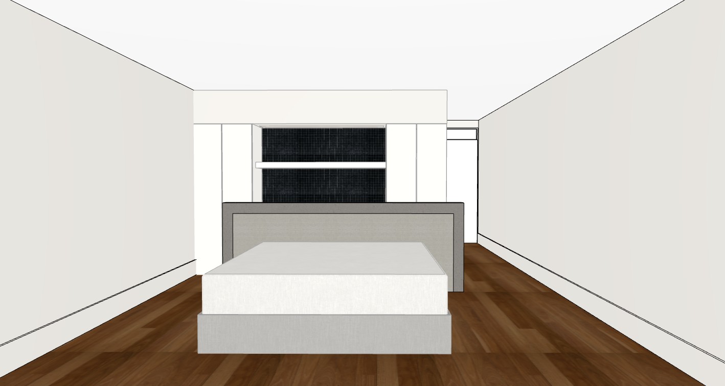 modernist render image add white hotel bedding to bed render black mosaic architecture