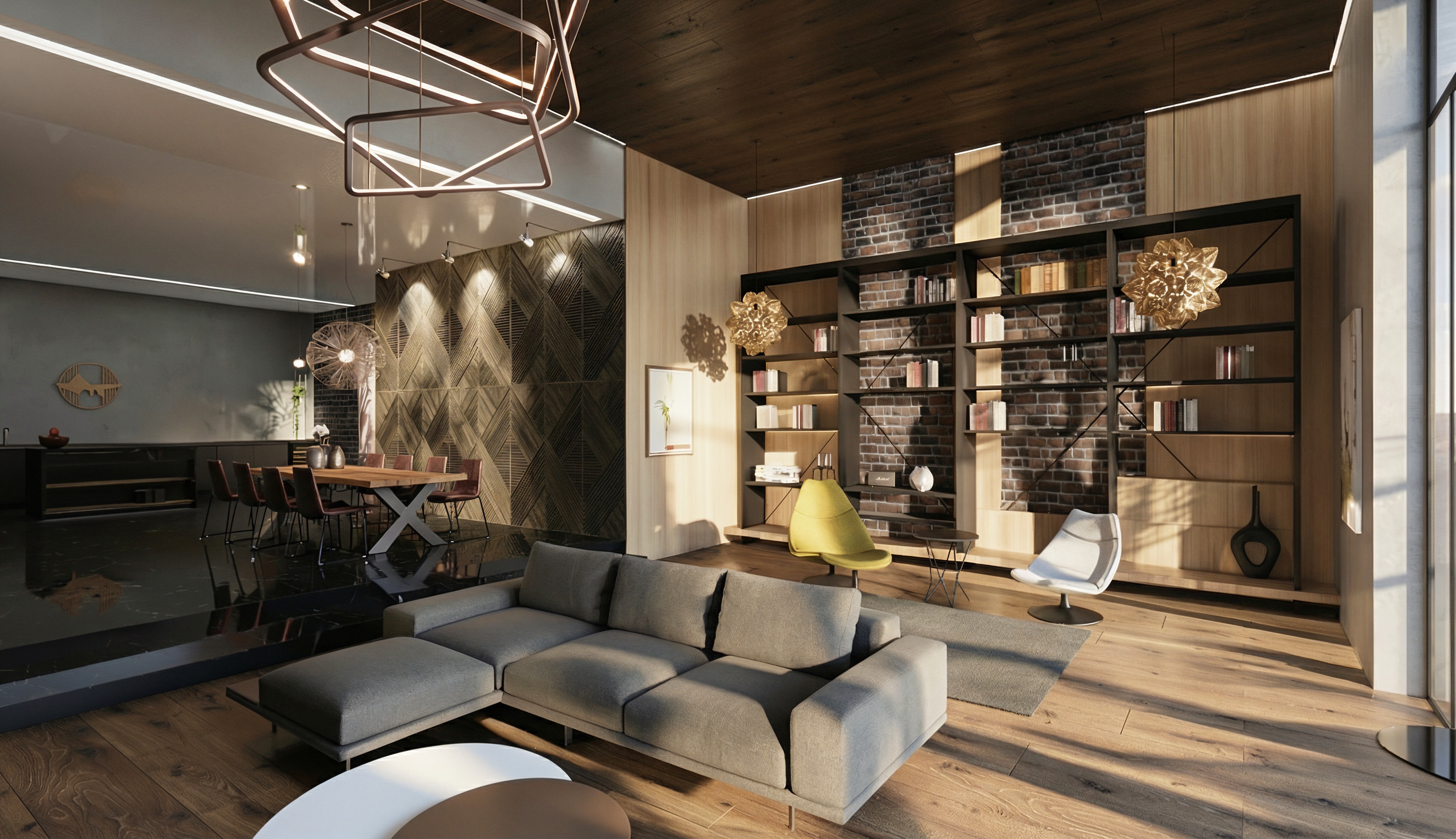 the serene beauty of a minimalist sanctuary meets the charming reality of a lived in home sunbeams stream through the large windows illuminating a few stray toys scattered across the light wood floor and adding a soft glow to the room amidst the unmade bed and rumpled grey sheets a woman takes a quiet pensive moment for herself cradling a warm cup of coffee while gazing out at the world it s a scene of beautiful chaos a perfect blend of high end design and the authentic messy traces of a life filled with family and movement