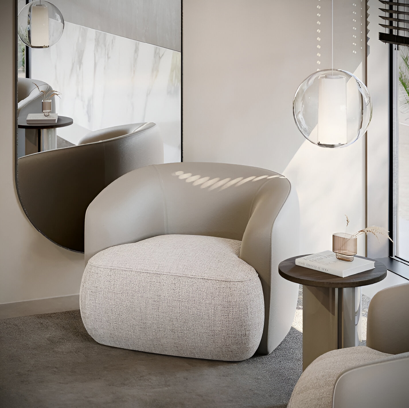show me this armchair with a plynth to accomodate a swivel and without any furntiure around it