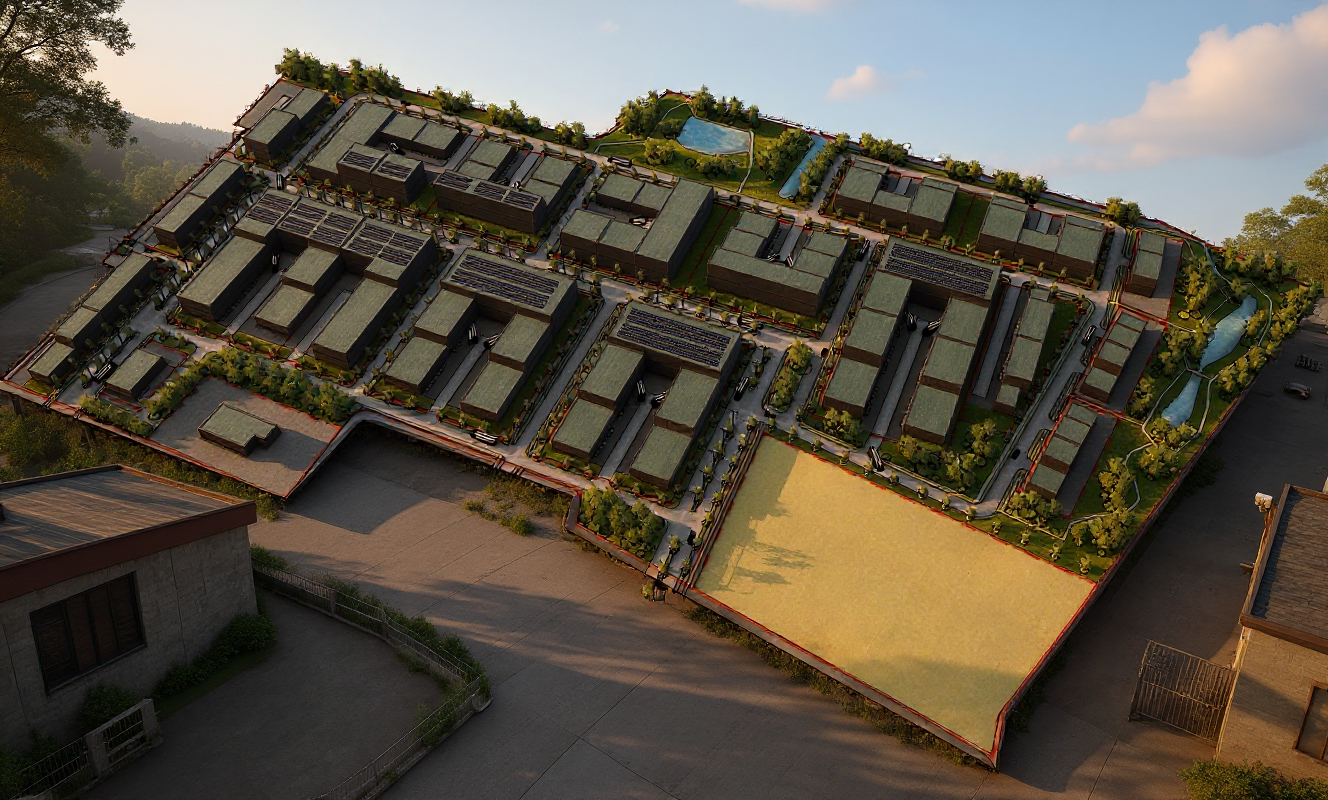 a charming countryside cider house surrounded by lush green meadows and apple trees the building has a rustic wooden exterior painted in soft barn red with contrasting white trim on the windows and doors the roof is a weathered slate gray giving it a vintage farmhouse feel bathed in the warm glow of golden hour sunlight the atmosphere is serene and inviting with shadows softening the vibrant colors the windows have wooden shutters in a warm chestnut brown matching the large barn doors at the entrance add subtle details like a wooden sign with the words cider house above the door delicate flowers in window boxes and a clear blue sky dotted with fluffy white clouds