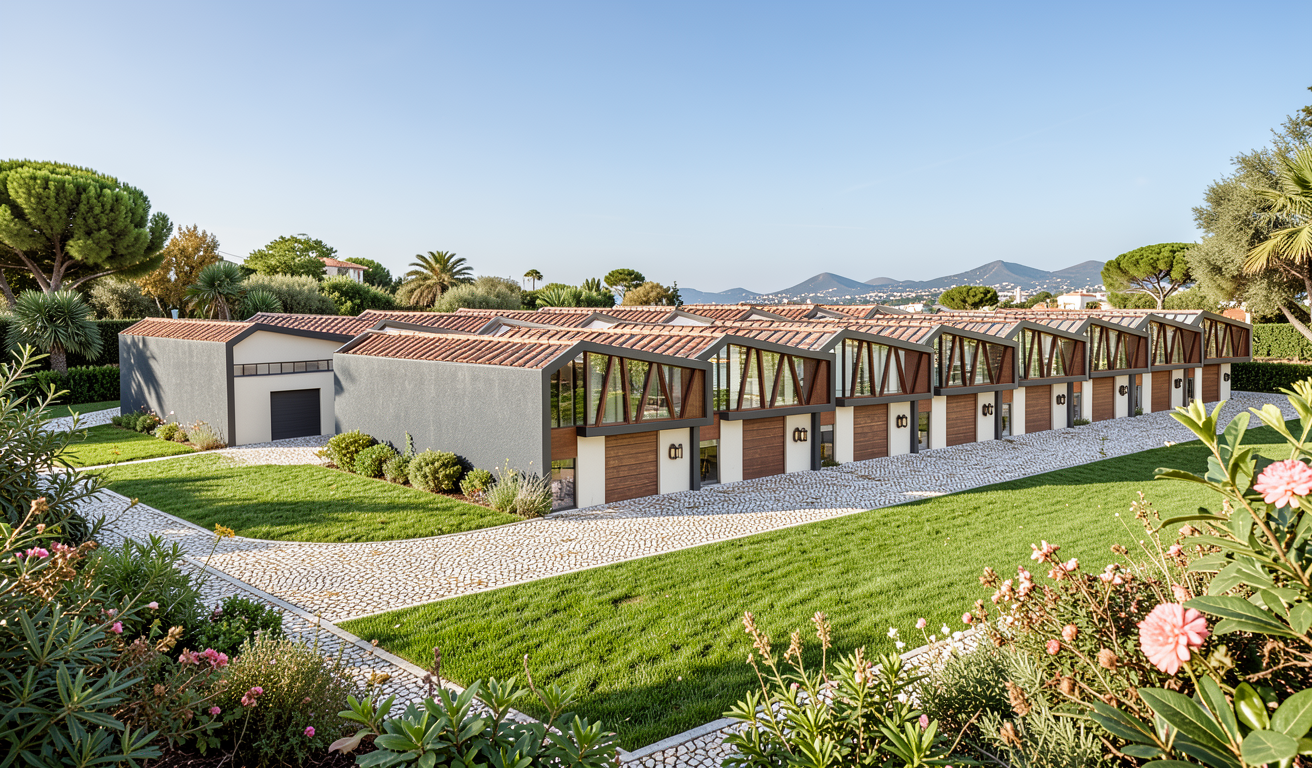 esta casa fica em mafra lisboa renderize a imagem com qualidade fotogr fica com c u limpo s 10h da manh adicione vegeta o de forma moderada ao redor do per metro de asfalto n o coloque vegeta o no perimetro do edif cio