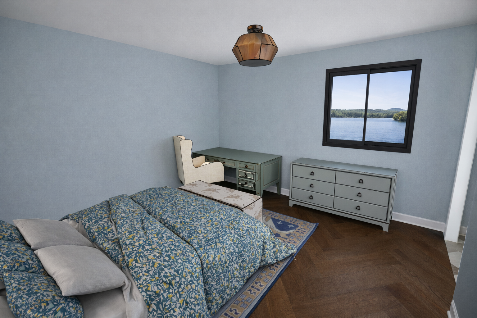 add wall art to walls add decor to desk and don t change light fixture