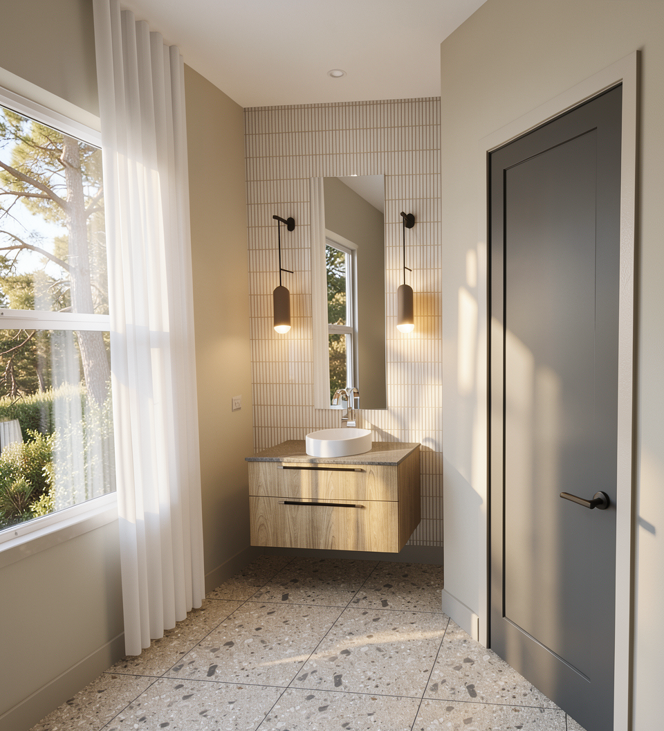 medium brown wood flooring white walls