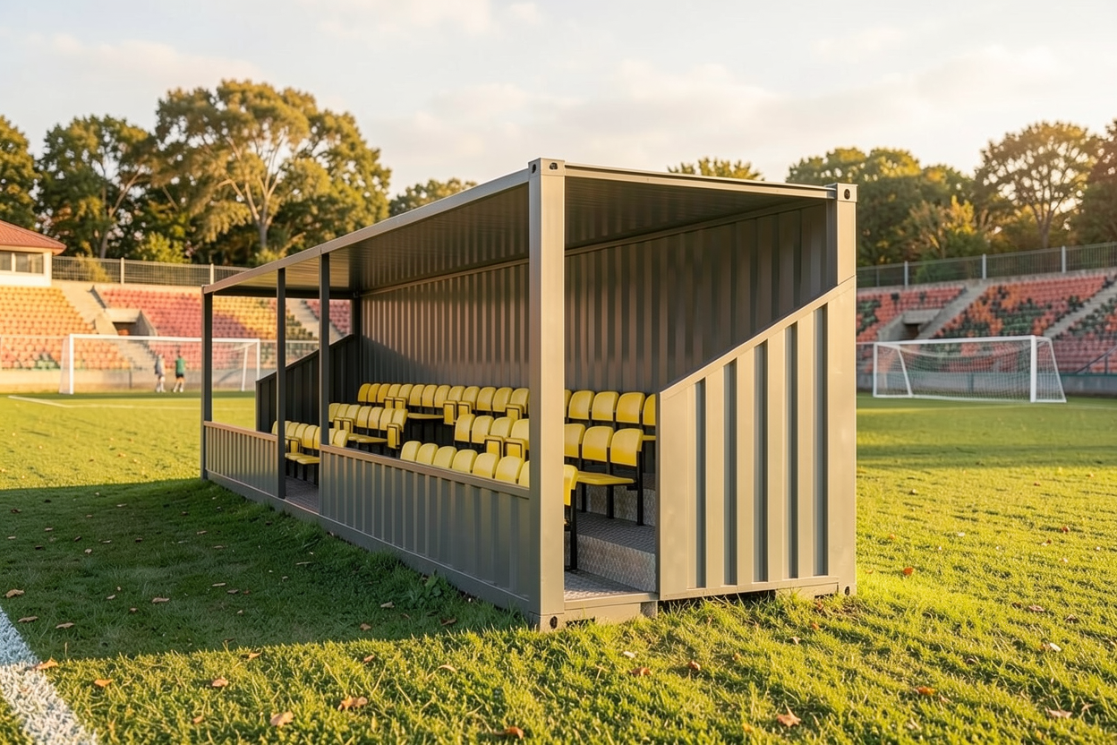colocar a bancada numa lateral do campo de futebol com vista a estacionamento atras