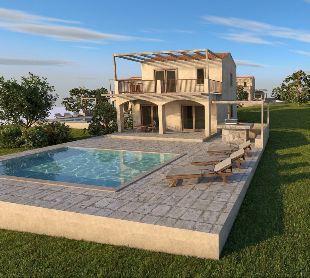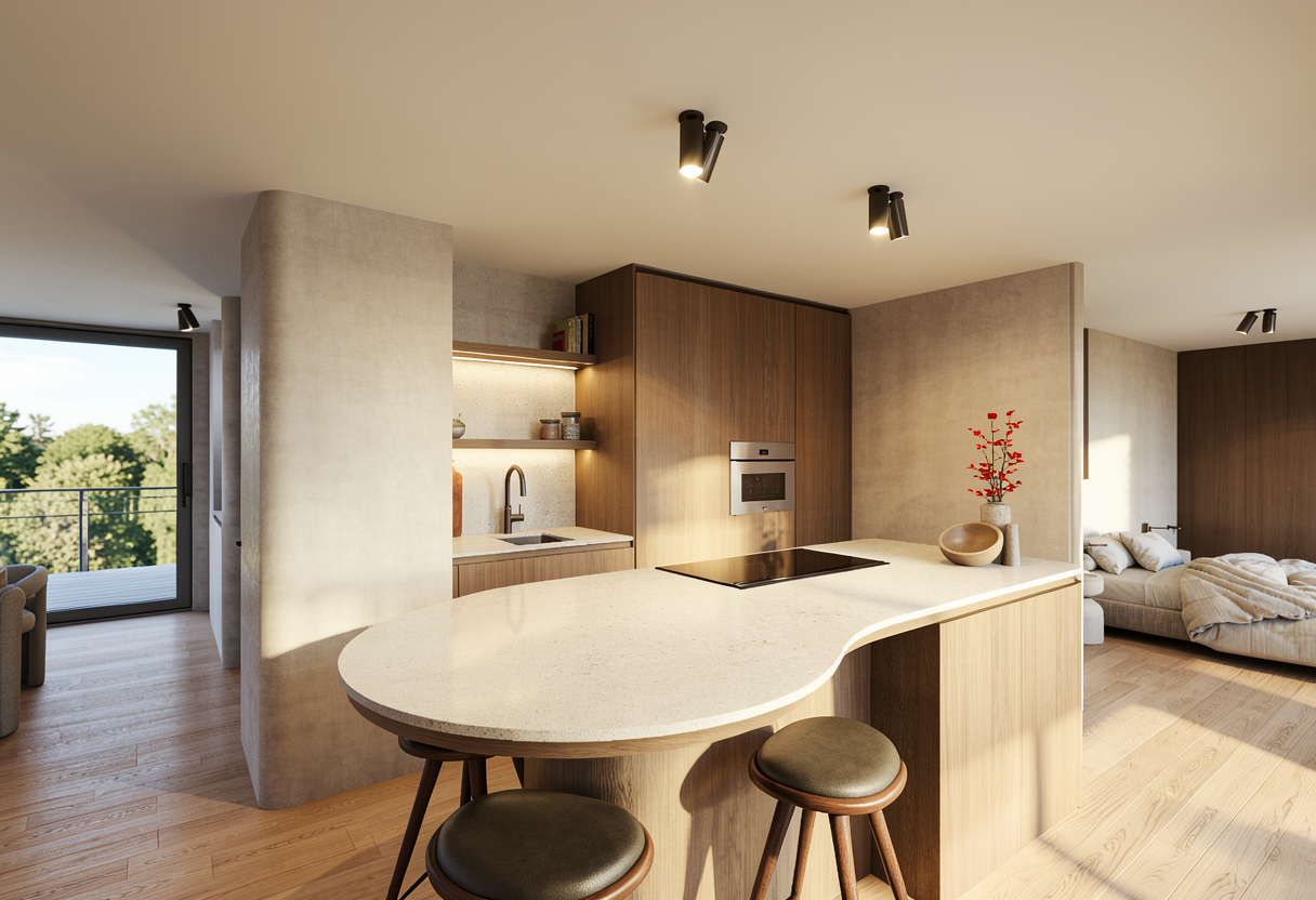 transform the input architectural render into a hand drawn architectural sketch style like the provided reference clean thin black ink linework outlining all main edges and details with soft watercolor like shadow washes and subtle grey shading on ground and surroundings important preserve the original render s materialization colors textures and glazing exactly brick wood metal concrete window tint roof color do not redesign materials do not recolor the facade do not change cladding patterns keep the same camera perspective composition and massing style minimal white background selective color emphasis mainly on the building and greenery surroundings simplified in light grey linework soft washed shadows crisp contour lines with slight hand drawn wobble limited hatching calm architectural illustration