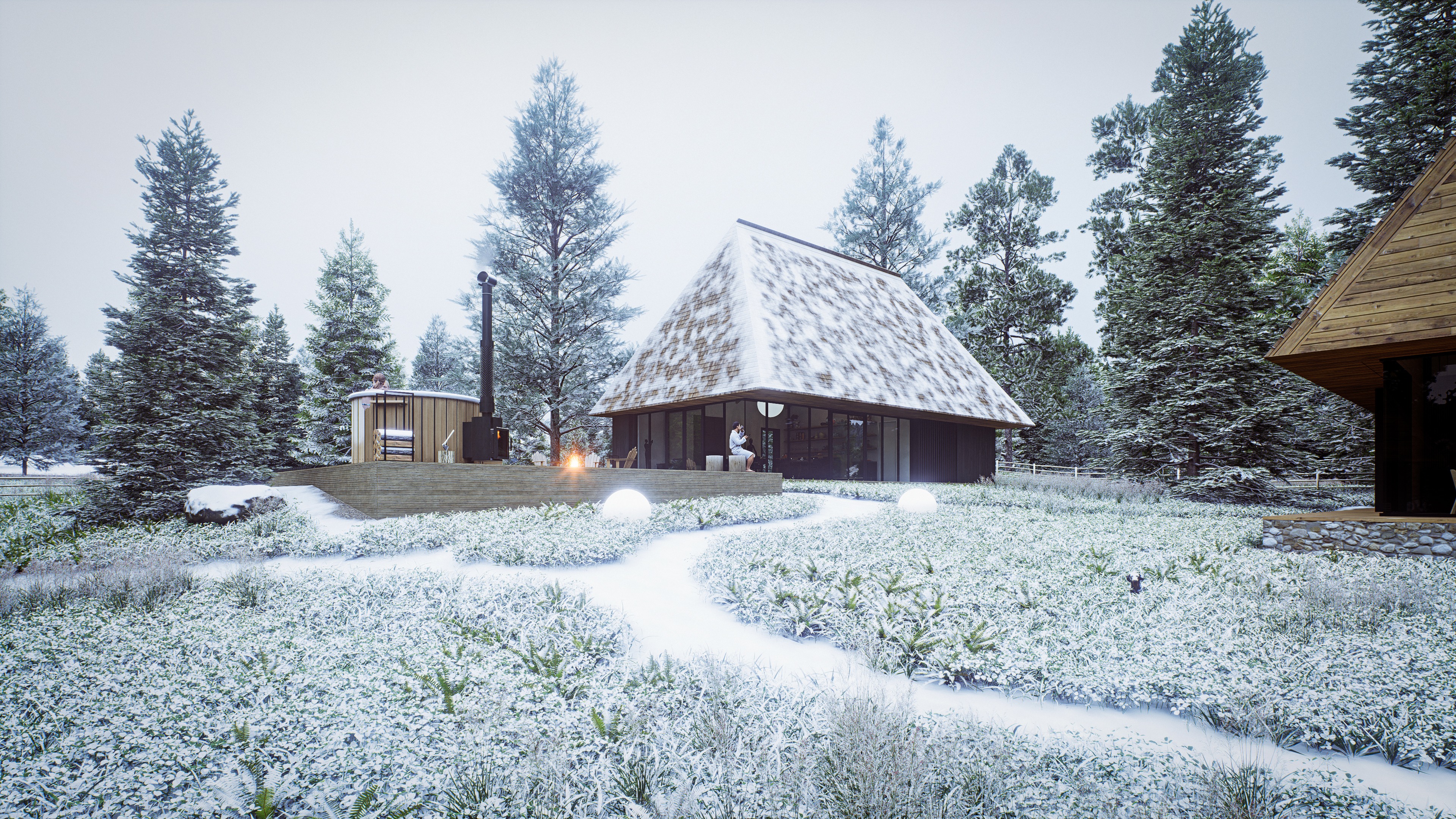 increase snow by 20 important preserve the existing geometry and the existing context exactly as provided do not modify alter reinterpret add remove scale or reshape any geometry do not change the site surroundings street layout neighboring buildings vegetation or context elements do not modify geometry scale proportions buildings road layout sidewalks or surrounding context in any way